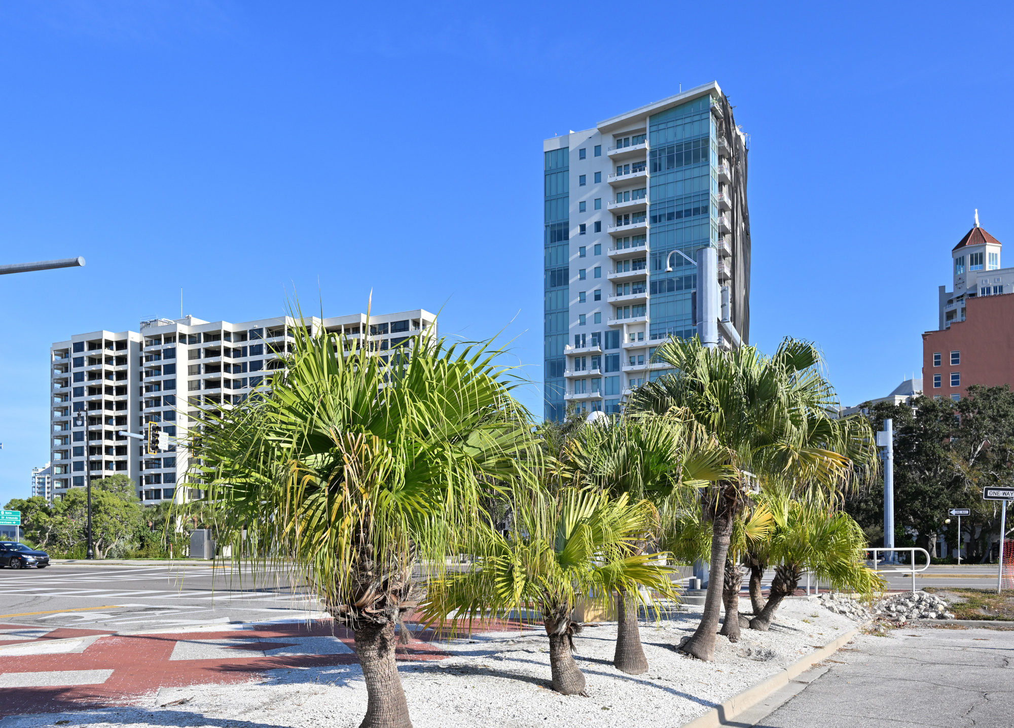 The Five Points Roundabout sits at the center of downtown and pulls several streets into one compact junction. Traffic moves steadily around it, framed by shops, cafés, and a bit of midday noise. It is one of those places where you notice how close the city, the bayfront, and the quieter neighborhoods actually are.