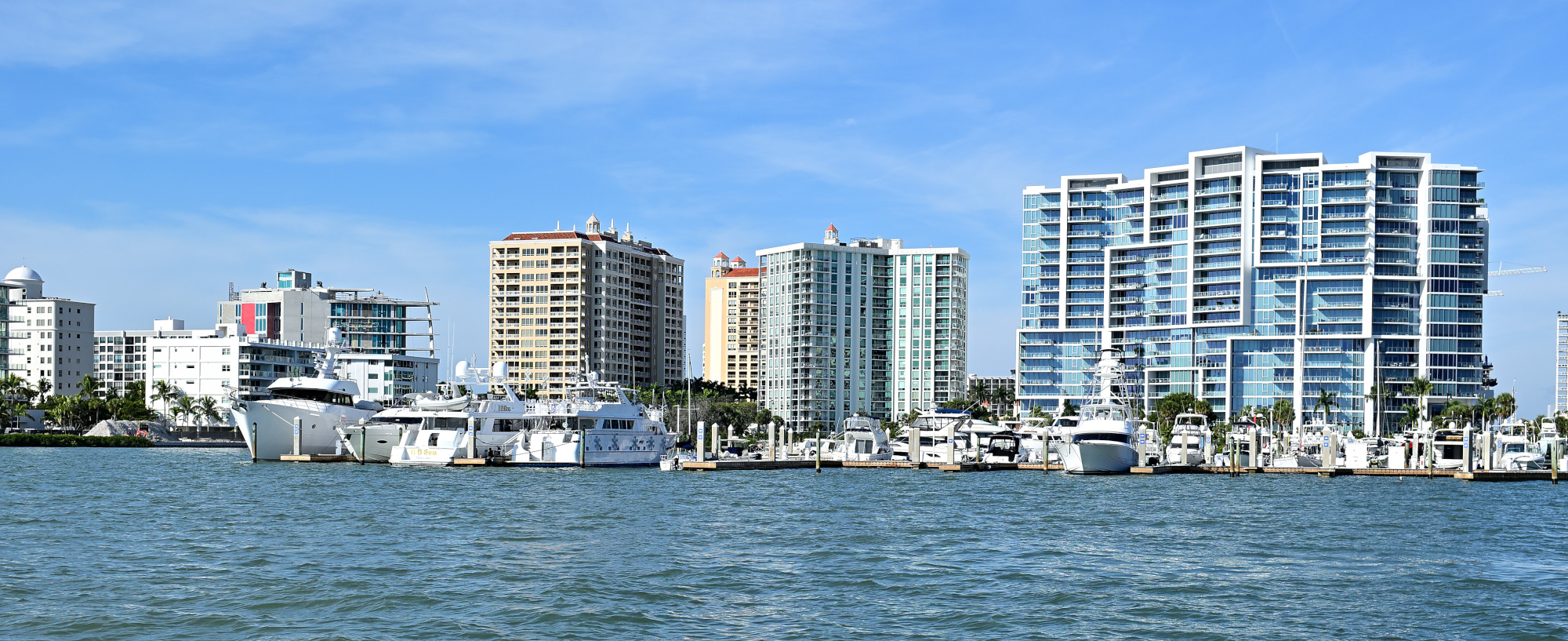 Marina Drive runs just behind Gulfstream Park and borders the marina itself. It is a short stretch where boats, water, and the edge of downtown meet. Palm trees everywhere.
