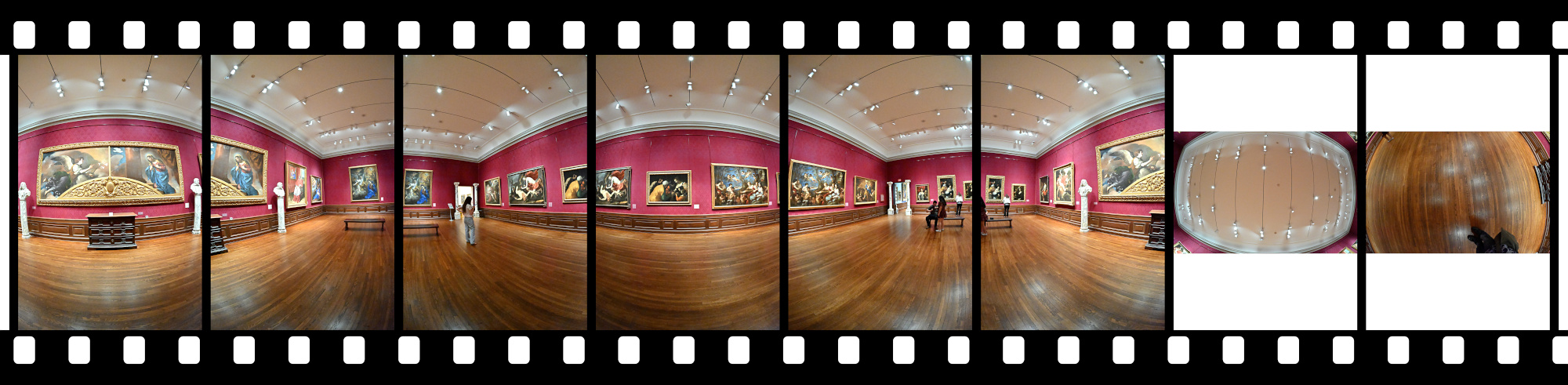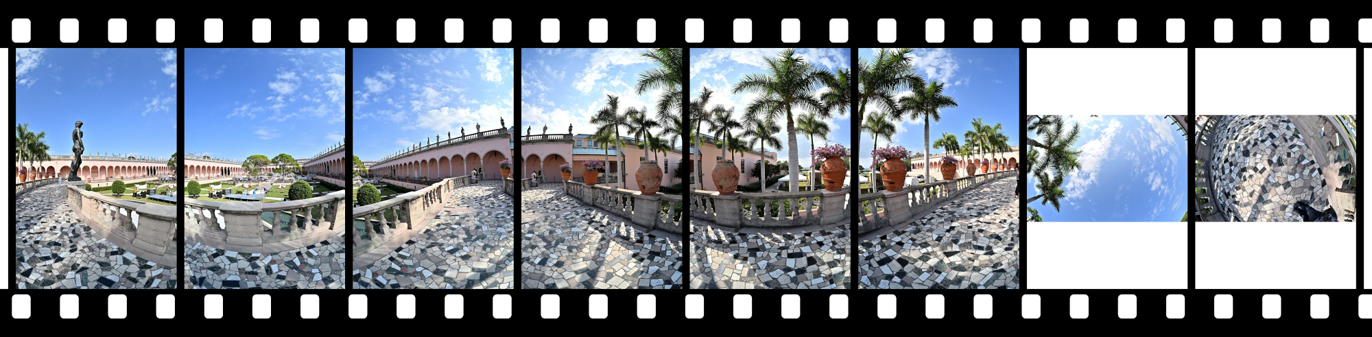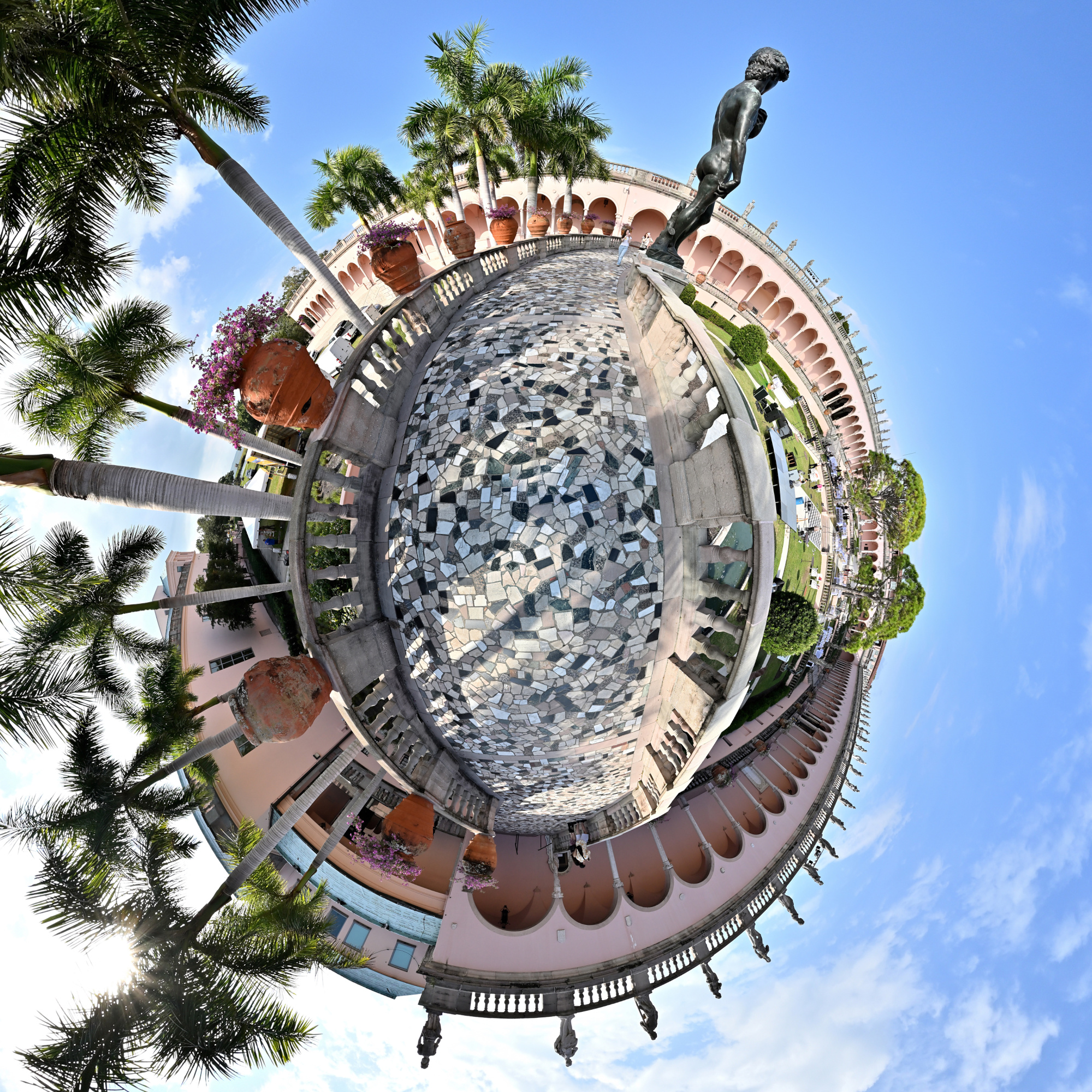 Panoramas from the Ringling Museum of Art, with views from galleries to courtyard.