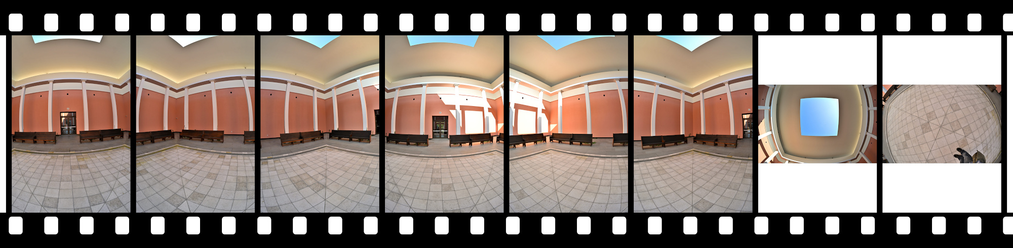 Denn das Wandbild passt nicht in ein einziges (Fisheye) Bild.