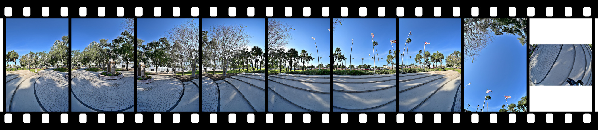 Classical panoramic photography relies on rotating the camera around its nodal point. This technique enables impressive 360° captures and works especially well for scenes with significant depth. But what if the subject itself is elongated, like a mural or a row of buildings, and cannot be effectively captured through rotation?