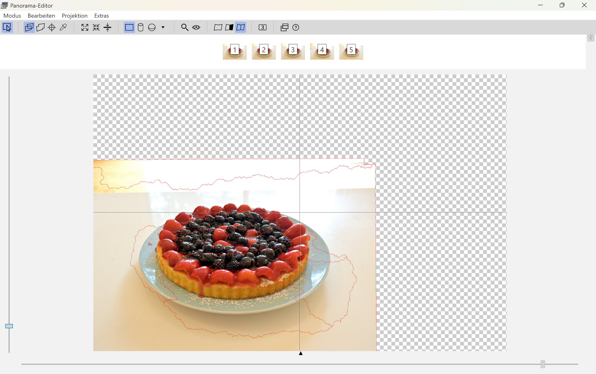 Im PTGui-Screenshot sieht man, wie die fünf Aufnahmen übereinander ausgerichtet sind. So entsteht daraus das durchgehend scharfe Bild.