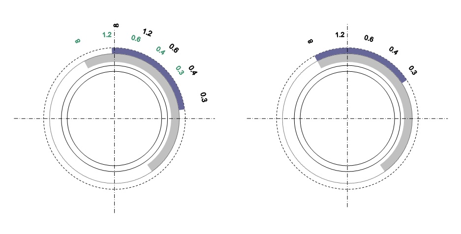 Why does the lens doesn't focus at infinity? For some reason the distance settings ring wasn't aligned with the lens setting. Infinity for the distance ring didn't match the position for the internal lens ring. See the left drawing. With the wrong aligned distance ring, the distance range of the lens is shifted from 0.3m-infinity to 0.05m-1m.