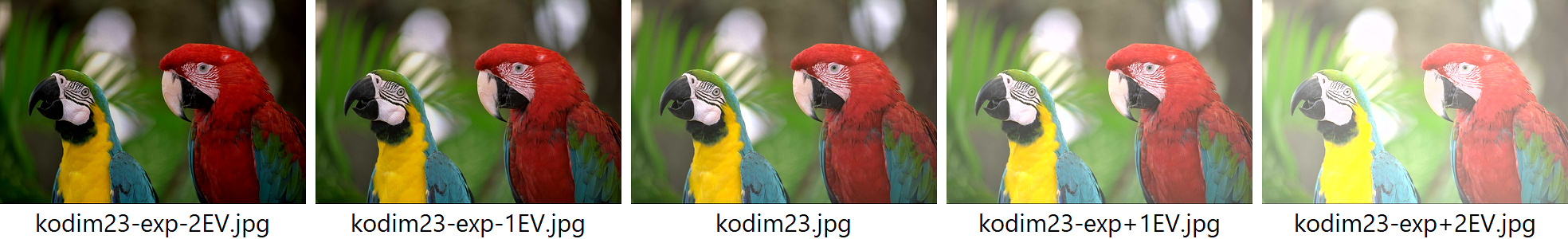 # Brighten by 1 stop jpegtran -copy all -exposure-comp 1 input.jpg output.jpg # Darken by 0.5 stops jpegtran -copy all -exposure-comp -0.5 input.jpg output.jpg # Contrast (uniform: DC=LOW=MID=HIGH) jpegtran -copy all -contrast -1 -1 -1 -1 input.jpg out-contrast-u-1.jpg jpegtran -copy all -contrast -0.5 -0.5 -0.5 -0.5 input.jpg out-contrast-u-0.5.jpg jpegtran -copy all -contrast 0.5 0.5 0.5 0.5 input.jpg out-contrast-u+0.5.jpg jpegtran -copy all -contrast 1 1 1 1 input.jpg out-contrast-u+1.jpg # Contrast (band-specific examples) jpegtran -copy all -contrast 0 0 0.6 0 input.jpg out-contrast-mid+0.6.jpg jpegtran -copy all -contrast 0 0 0 0.4 input.jpg out-contrast-high+0.4.jpg jpegtran -copy all -contrast 0 0.4 0 0 input.jpg out-contrast-low+0.4.jpg # Combine: rotate 90°, brighten 0.5 EV, and add uniform contrast +0.5 jpegtran -copy all -rot 90 -exposure-comp 0.5 -contrast 0.5 0.5 0.5 0.5 input.jpg output.jpgBoth switches accept fractional values. Practical ranges: