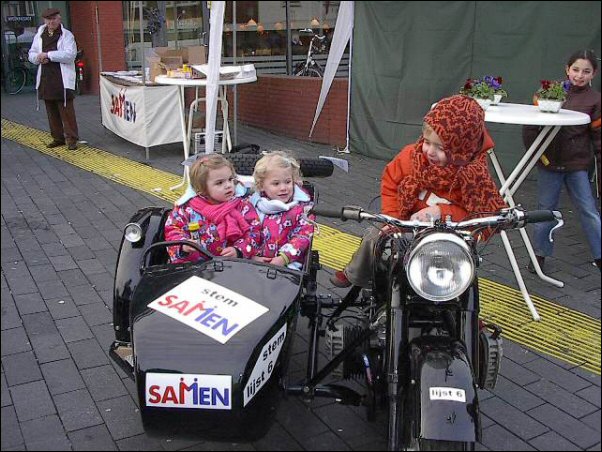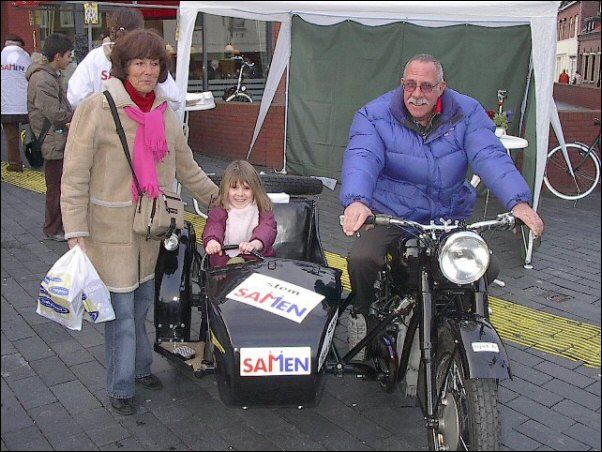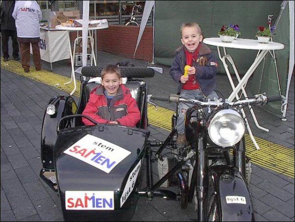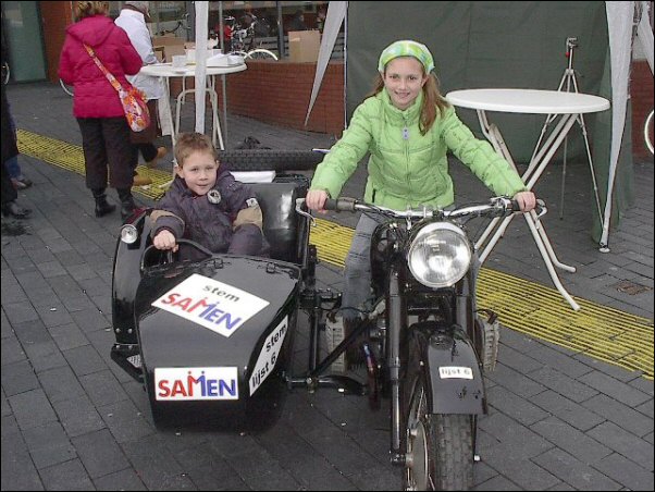 My wife runs for her third term as a member of the city council of the town we live in (Venlo). So, what better eye-catcher than a Chang Jiang 750 M1 can one come up with? None! | ||||