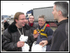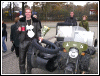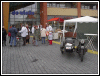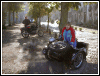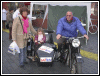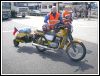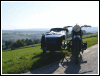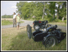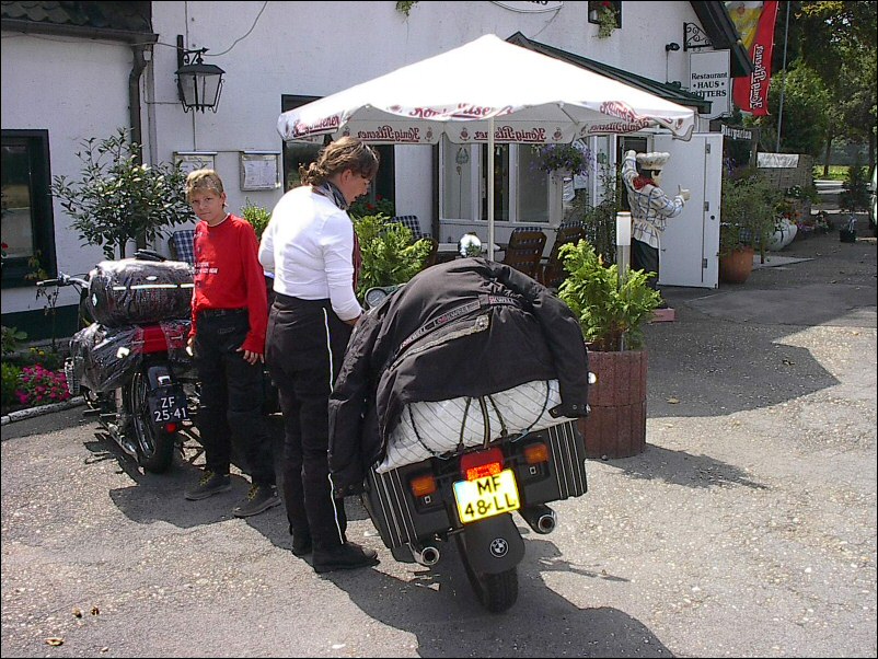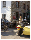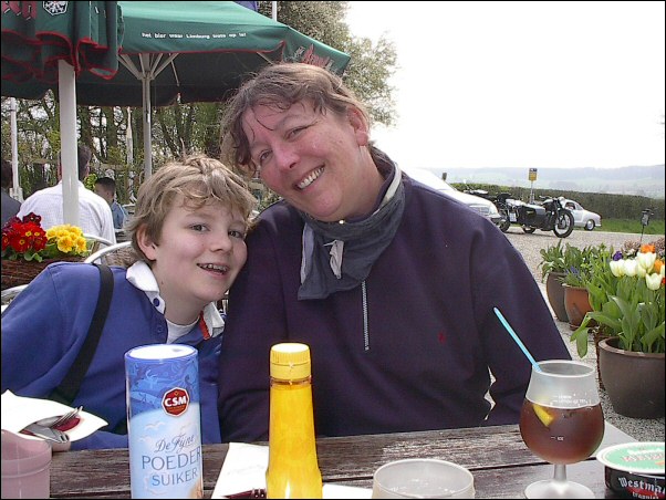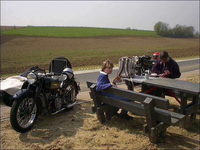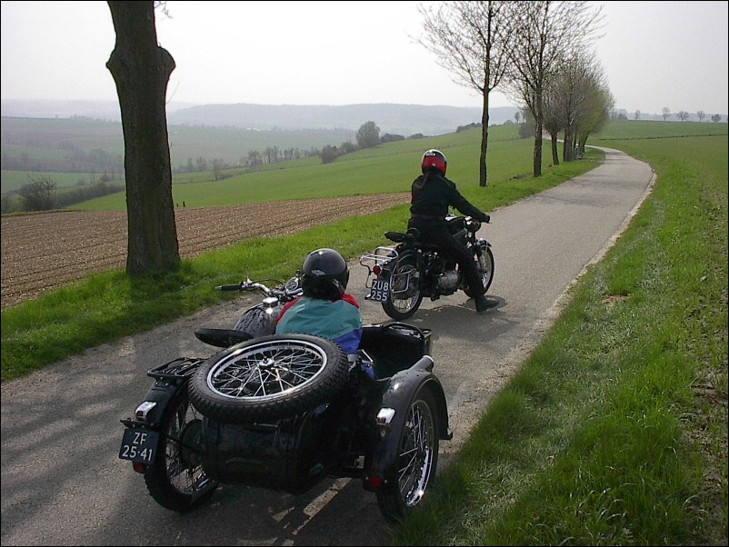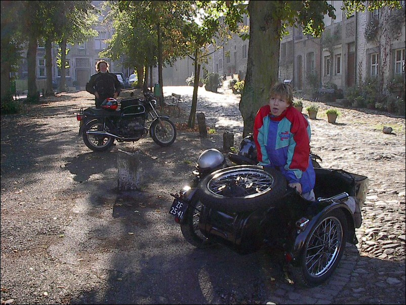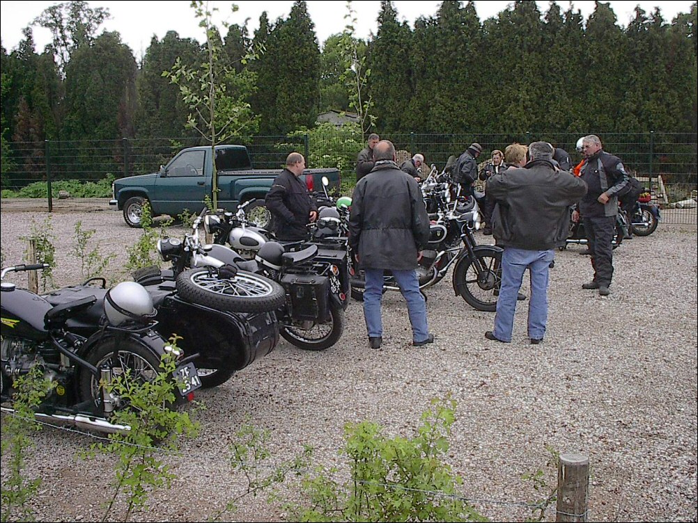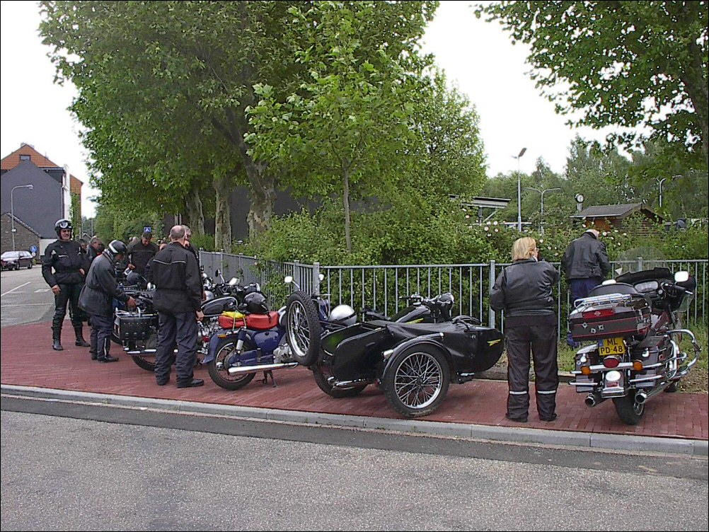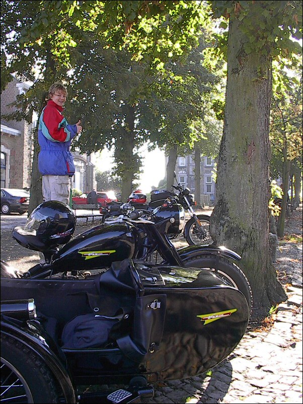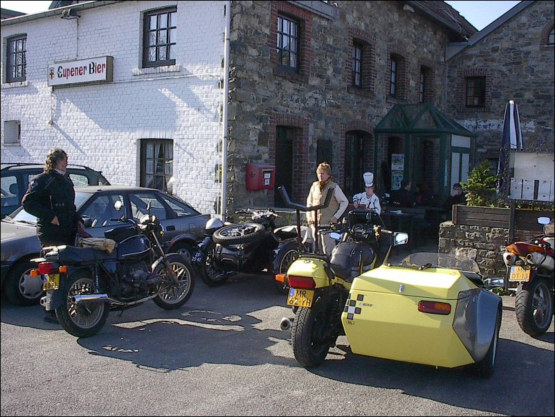 "The summit of our trip, a visit to Baraque Michel, at 674 meters, the second highest spot in the Belgian Ardennes. The inn at Baraque Michel dates back to 1798 and attracts lots of crowds like this BMW sidecar based on a K100. Do you know that the driver is disabled? Yes! He drives this outfit, using a manually operated gearshift (look closely to the left of the handle bar) and attaches his wheelchair to the iron rack on top of the buddyseat. Obviously, with a little help from his friends!" | ||||