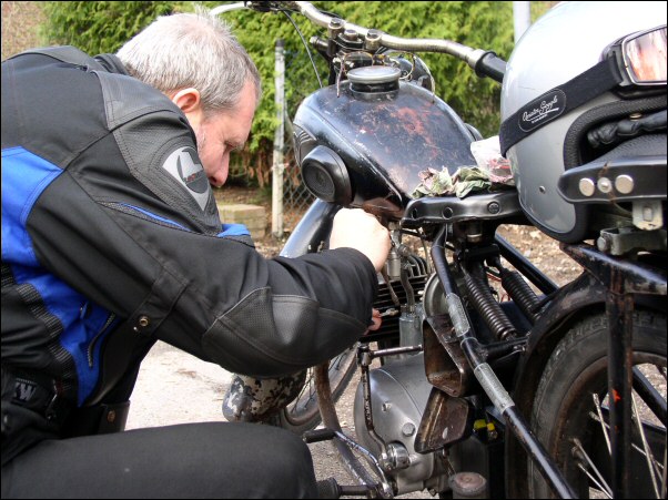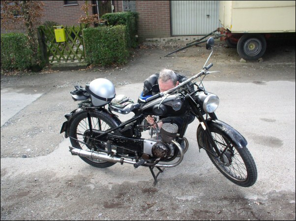 Her 1942 NSU ZDB125 did not deliver the awesome speed she was expecting. Stuttering, holding back, then pulling again, I suspected the gas flow. So, we parked at a quiet spot and I checked the little 16mm carburettor. Yes! My own fault. One should NEVER leave a two-stroke engine for five months in the garage without removing all the gas inside the carb. | ||||
