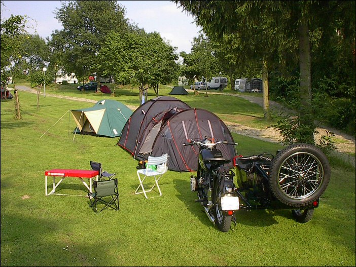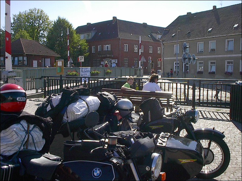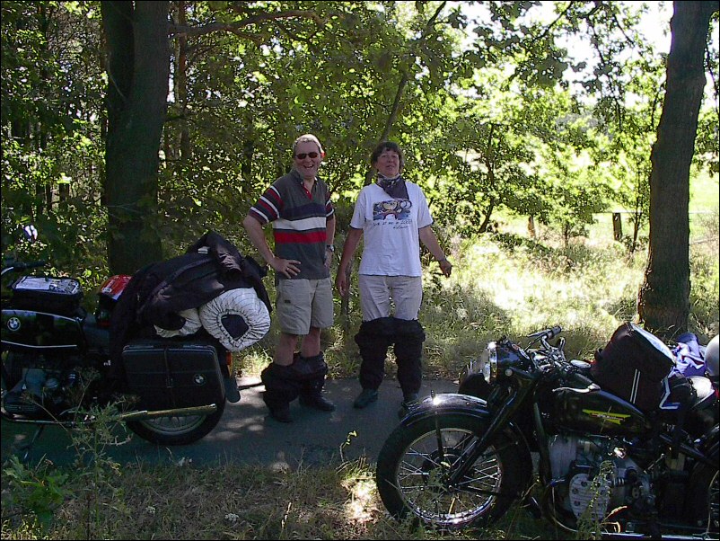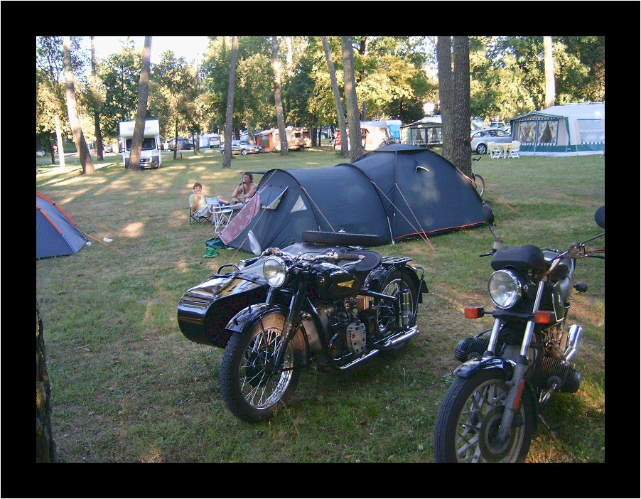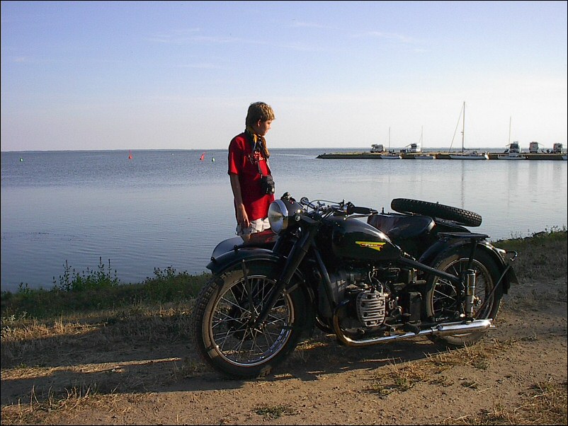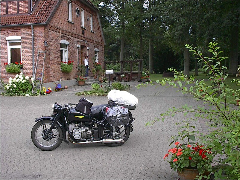 perfect way to de-speed and de-stress! Summer 2006 is as good as one imagines a good summer to be, so we decided to realise an old plan of ours. This was the perfect weather to make a round trip along the Baltic Sea shores, or parts thereof, on a motorbike! And because our CJ750 M1 has proven to be reliable, we had no problem in loading up our camping gear on the sidecar unit and my wife's BMW R65 and use these motorcycles as our means of transport for what turned out to be a vacation trip of almost 2300 kilometers! We drove diagonally in a northeasterly direction through Germany in 250 to 300 kilometer intervals and used small and very affordable hotels for the night. Only using the so-called "Bundesstrassen" (so NO motorways!) and driving with speeds of 80 to 85 km/h, we reached the Isle of Usedom on the third day where we put up our tents on a little camping ground near the Baltic Sea. We realised that this was a far better way of travelling, at ease, with no stress and with all the time in the world to enjoy the countryside you are passing. To put it another way, Kameraad Chang forced us to use moderate speeds, but it very quickly became a new and very pleasant way of travelling. These country roads are not jammed with traffic and very often we were the only road users for longer periods. What a luxury! The Baltic Sea throws her waves on the wide and white beaches of Usedom with water temperatures of 21 degrees Celcius! The Isle of Usedom has made a remarkable comeback as a beach holiday resort. Once very chique and fashionable at the start of the 20th. Century, World War II and the periods thereafter left their marks on essentially very nice houses, villas and surroundings with beautiful Art Deco and Jugendstil architectures. After 1989 the DDR (Deutsche Demokratische Republik) and West Germany were reunited and very quickly the restoration and rebuilding of the classic Baltic Sea resorts like Seebad Ahlbeck and Seebad Heringsdorf were undertaken. Now, 15 years later, we experienced modern and elegant sea resorts having a unique atmosphere and accomodated in historical, century old buildings and infrastructures. Highly recommended! But after a week or so we decided to move on and cross the Baltic Sea with the ferry from Rostock to Gedser in Denmark. We drove some 200 kilometers to get from the Isle of Usedom to our camping in Nysted, on the Danish isle called "Lolland". We could plunge into the Baltic Sea some 50 meters from our tent and experience water temperatures of 26 degrees Celcius. Not bad after a hot day of driving around the north German and Danish countrysides! Of course we did not only drive our bikes, we did lots of other things as well. Some of that can be found in the images. Finally, our three weeks of holidays neared their end and we used the same low paced, but very pleasent routine of driving some 200 kilometers, check into the next inn or hotel and keep on enjoying our de-speeded and de-stressed vacation. As for the bikes, the R65 was virtually un-present and performed like expected. Of course, we were curious how our Kameraad Chang would perform on such a long trip. In shortvery good. Every now and then some extra SAE 30 oil to keep the engine pleased, checking the spokes and a one time small adjustment of the clutch cable. That's it. |