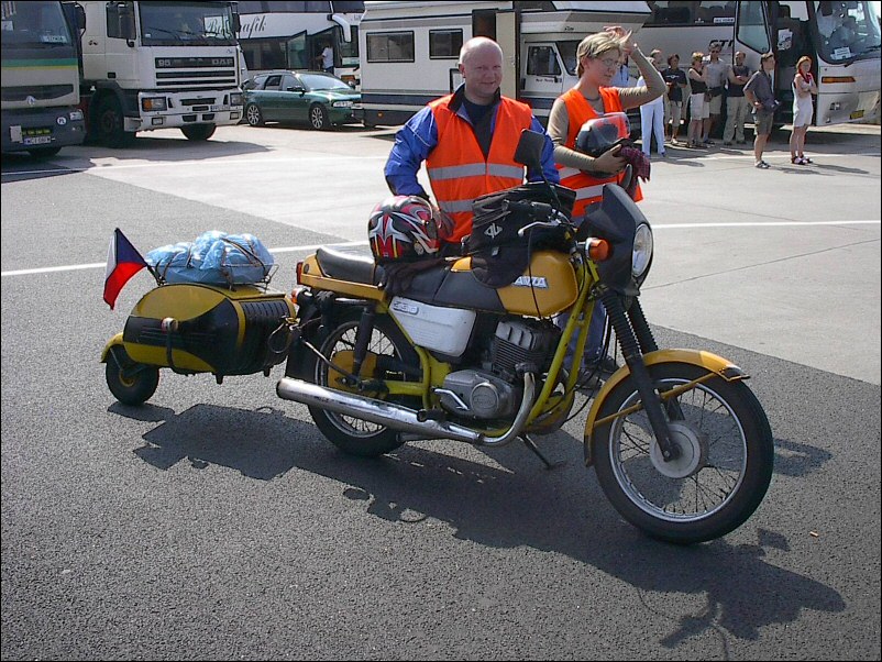 These Czech people also boarded our ferry with their 350cc JAWA towing a nice little trailer. | ||||