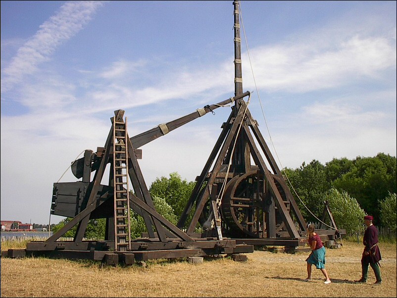 Medieval Times (or Mad Evil Times?) these "Trebuchets" were very successful throwing weapons and co-existed with the first cannons for two centuries (1300 to 1500). | ||||