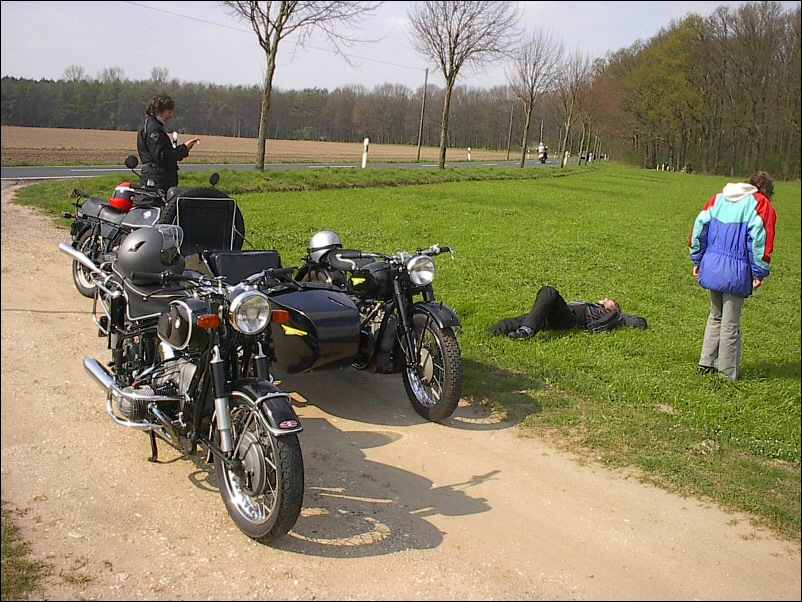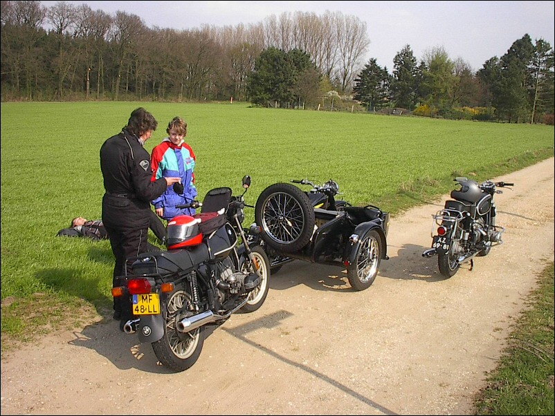 "Netherlands: We have an extremely mild and warm early spring over here and the Easter holidays were no exception. On Easter Monday we traditionally have our first real ride out. In the images you see my wife Marjoleen, my oldest son Richard driving a 1964 R60/2 and Reinier and I managing the CJ750 M1." | ||