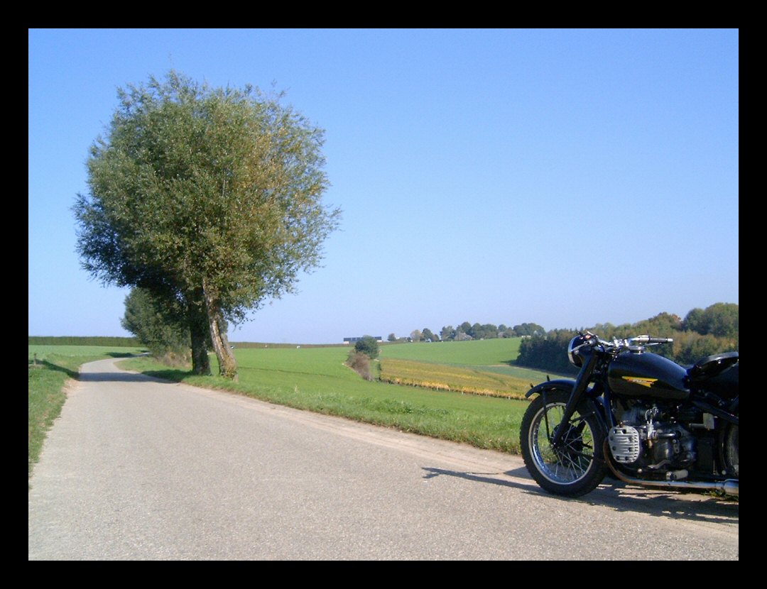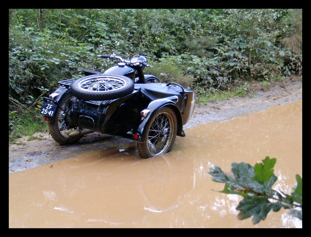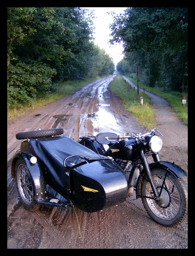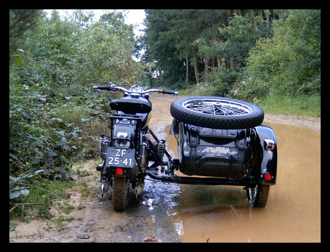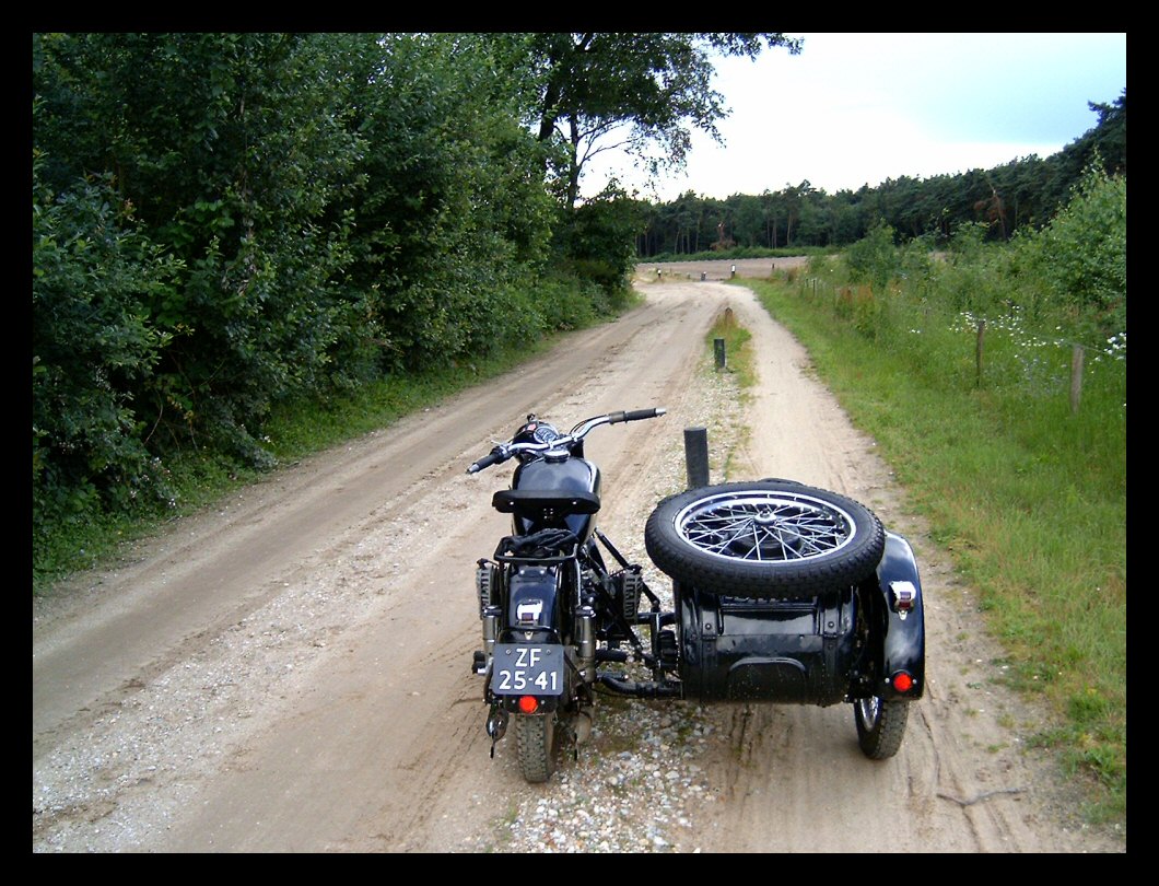 some 30 kilometers from where I live. Friday evening, nice weather between thunderstorms so I took a ride literally through our countryside. I don't know why (some people now shout "global warming!"), but our storms and rains indeed are changing. Years ago we would see a very occasional heavy thunderstorm with real heavy rain. This year (like in last year) almost every time a bad weather is real bad weather. My personal qualification: like it's becoming more tropical. And I was born in Aruba, so I know tropical thunderstorms. Anyway, we now already have a week of this kind of wheather. This means that our very nice infrastructure of small country roads is getting very wet and slippery. Still, I wanted to take these small and smallest roads to get to my destination. And I had my camera with me. Have a look for yourself! Yes, this being a Chang Jiang afficionado's site, the CJ750 M1 is really built for this type of work. Like a bulldozer my M1 pulled me through real bad sand roads, soaked with water. Third gear in, good speed, shifting, sliding, but always pulling the outfit through sticky and half fluid sand. I enjoyed every second of it!" |