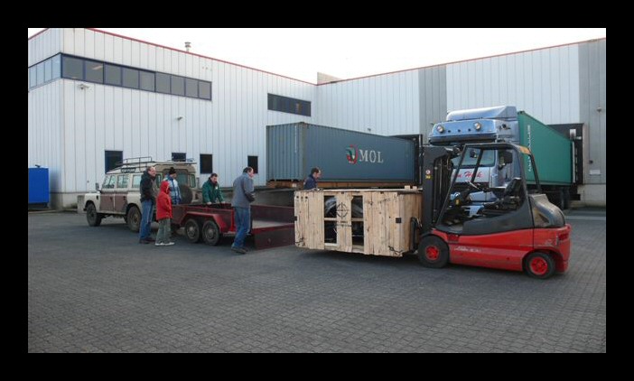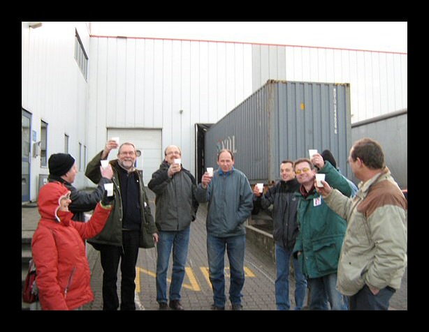 "No, I did not yet have had too much Christmas bowl! Here are some pictures to show the un-loading of the fifth shipment of Chang Jiangs into the Netherlands, again supplied by Mr. Li Yan." | ||