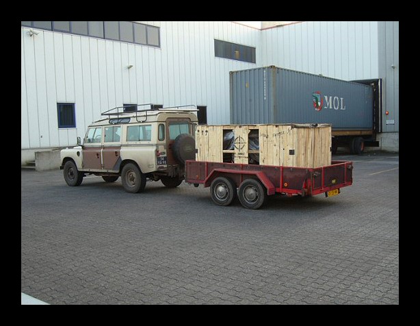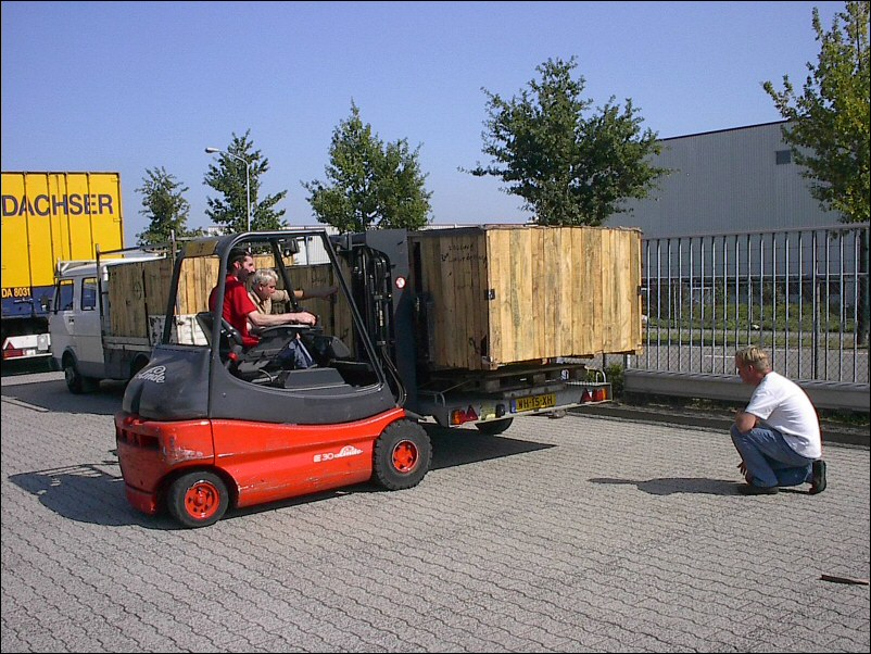 "Unloading and customs clearance takes place at Seacon Logistics in Venlo. Here we see why nobody tries to steal our crates while being stored in the warehouse. This warlord takes care of that!" | ||||