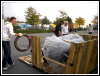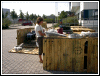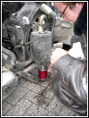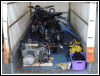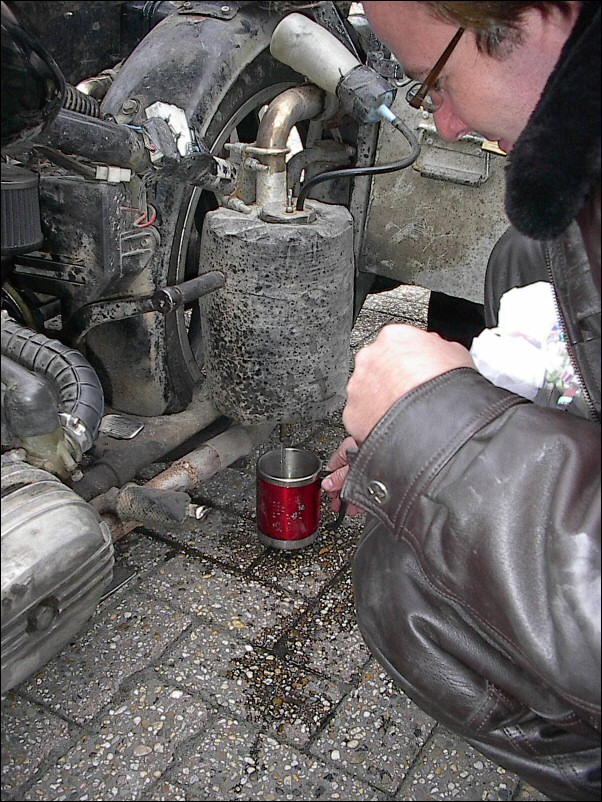 "Jim Bryant already commented on this contraption. It's a heat exchange unit, also known as a boiler. The exhaust pipe runs through a water container. At the bottom Roel installed a tap and has had hot, desinfected water with him all the way. We see him making coffee just to show that it did not start leaking. (Regards from Roel to Jim here!)" | ||||