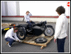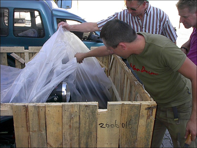 "René Sijmons (third from left, one of the new owners) has never seen a CJ750 being uncrated that fast. My wife clocked uswe needed less than ten minutes." | ||||