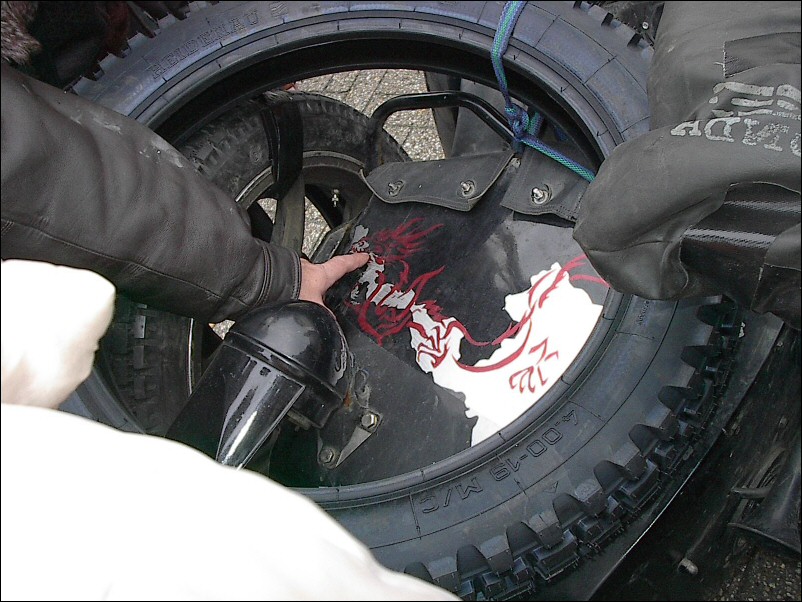 "What else to do with your sidecar body than painting your roadmap on it? This helps a lot in not getting lost between say China and Iran... (-; " | ||||