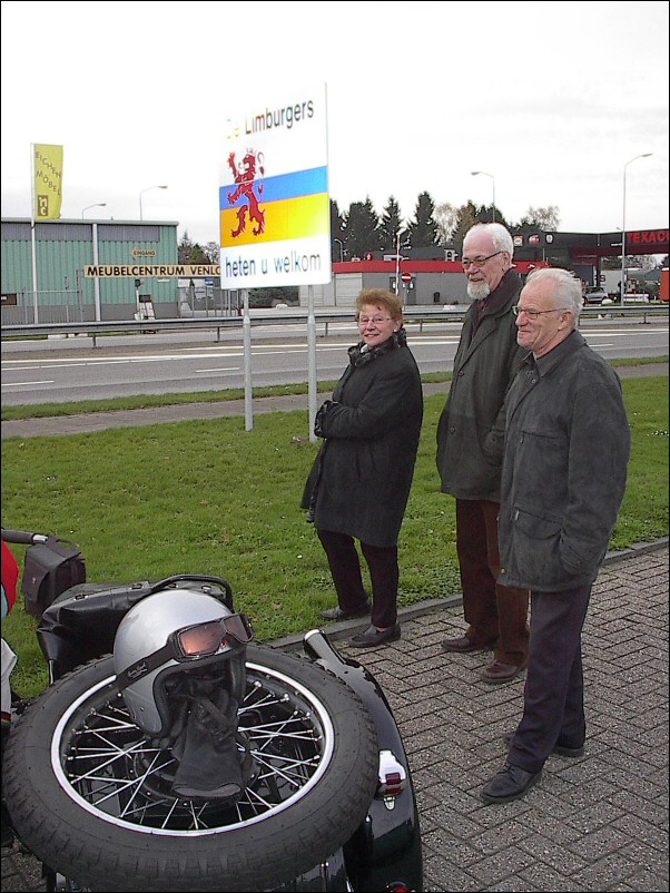 "And there they are! At 12.32 hours,Roel crossed the border with his girlfriend Lu Wang in the sidecar accompanying him for the last few kilometers from Duisburg in Germany." | ||||