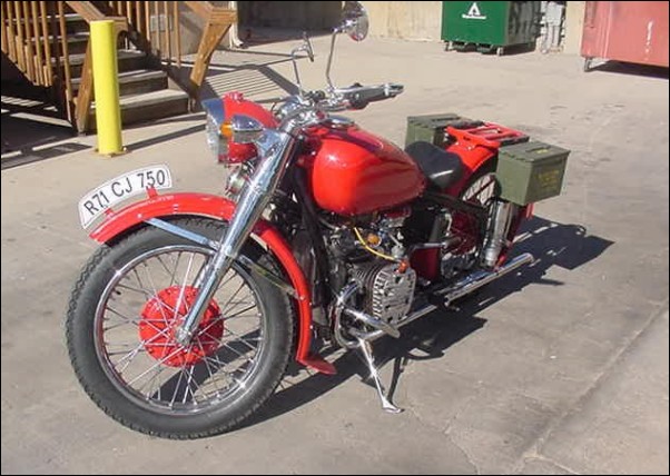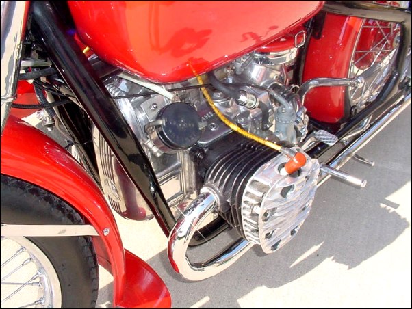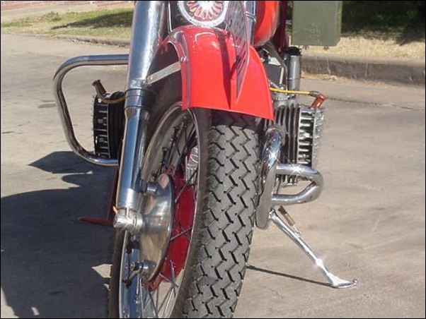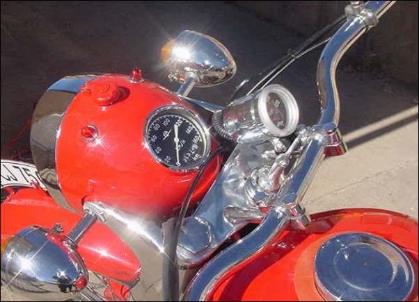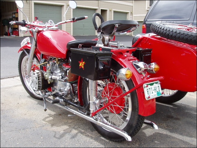This is a shot of the Red Pig showing one of the CJ license plate emblems we unveiled last week. Dariusz chose this name for his bike based on the year of its registry1959 which was the year of the pig. In China the pig isn't considered an offensive animal. Besides, hog was already taken. | ||||