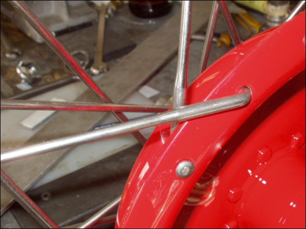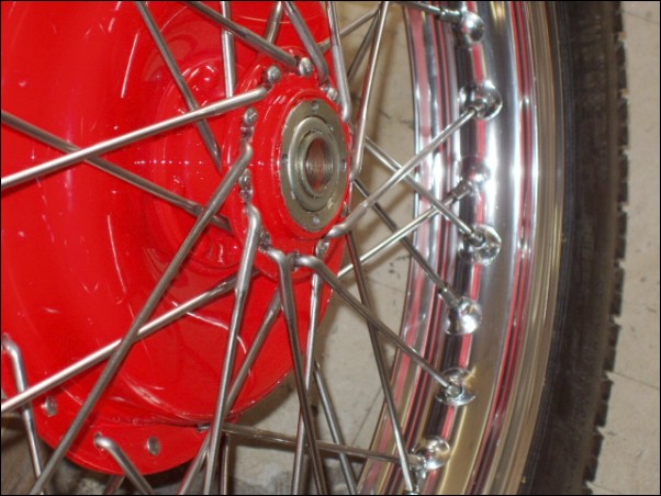 Detail shot of the new spoke pattern. It's much stronger than the original one. The new spokes are thicker at the hub. | ||||