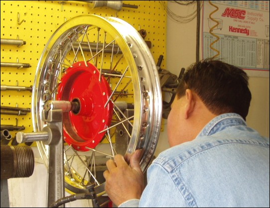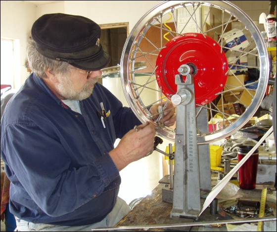 Lacing up a new Excel shouldered alloy anodized (2.15 x 19) rim using the original CJ hub. | ||||