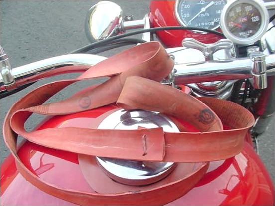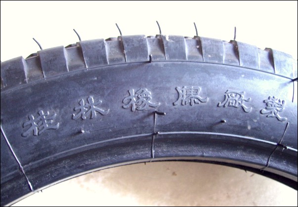 Know what this is? It's a Chinese rim strip made from an old inner tube cut up and stitched together. | ||||