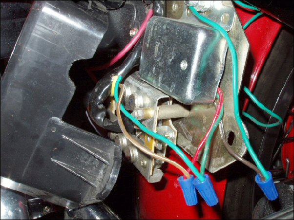 After cutting the plug off, the regulator has three wiresred, brown and green. The rectifier in my case had brown and green wires hooked up to the old regulator. The connections from the rectifier leads are: brown to red on the regulator, green to green on the regulator, and the remaining wire from the regulator which is brown goes to the frame for grounding. | ||||