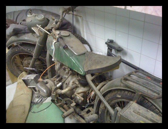 and old dusty Ural, probably from the 50s (in 6V), that