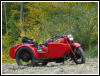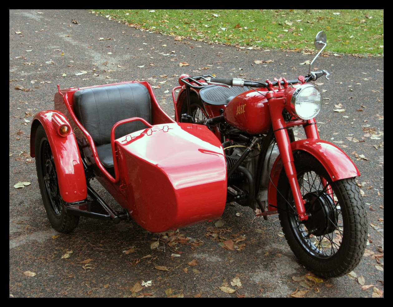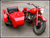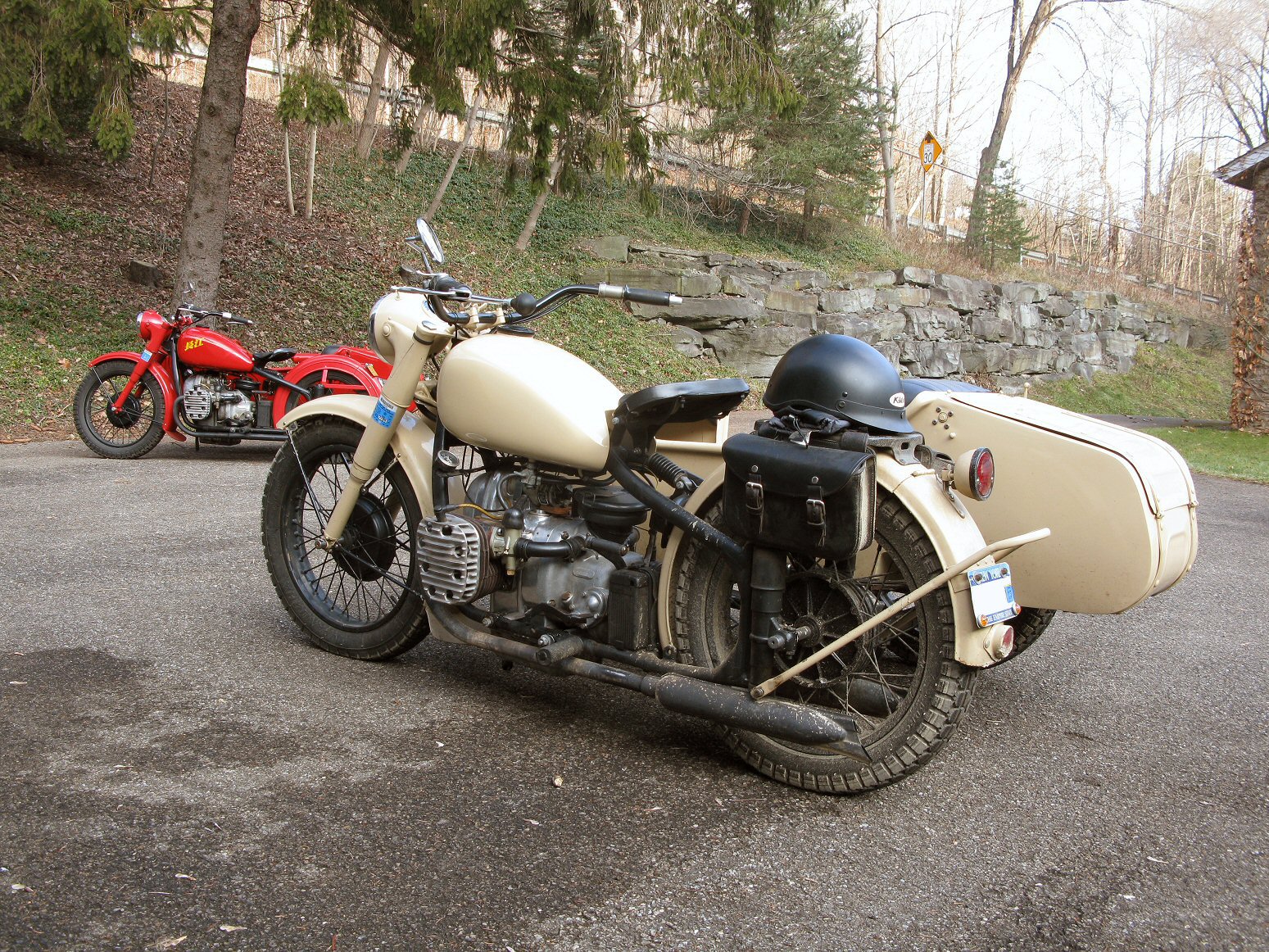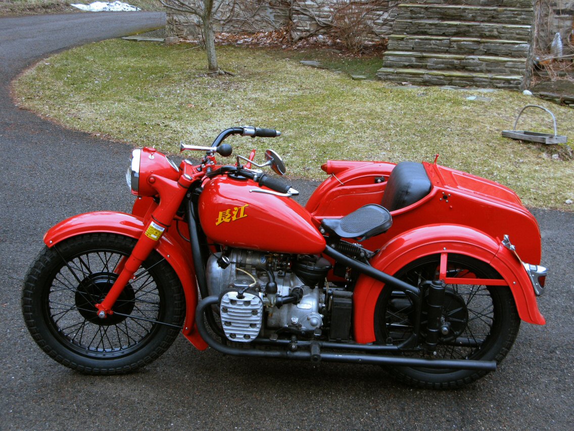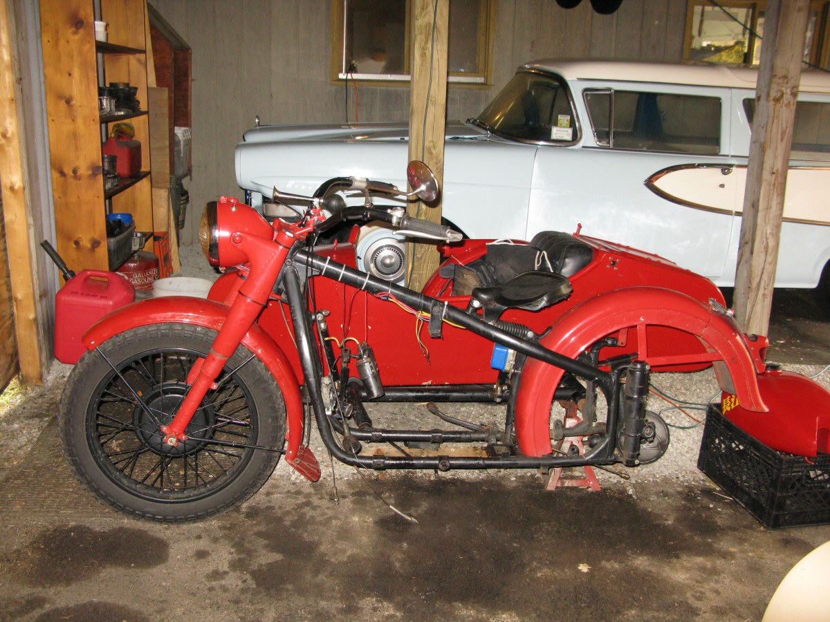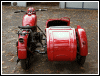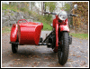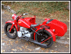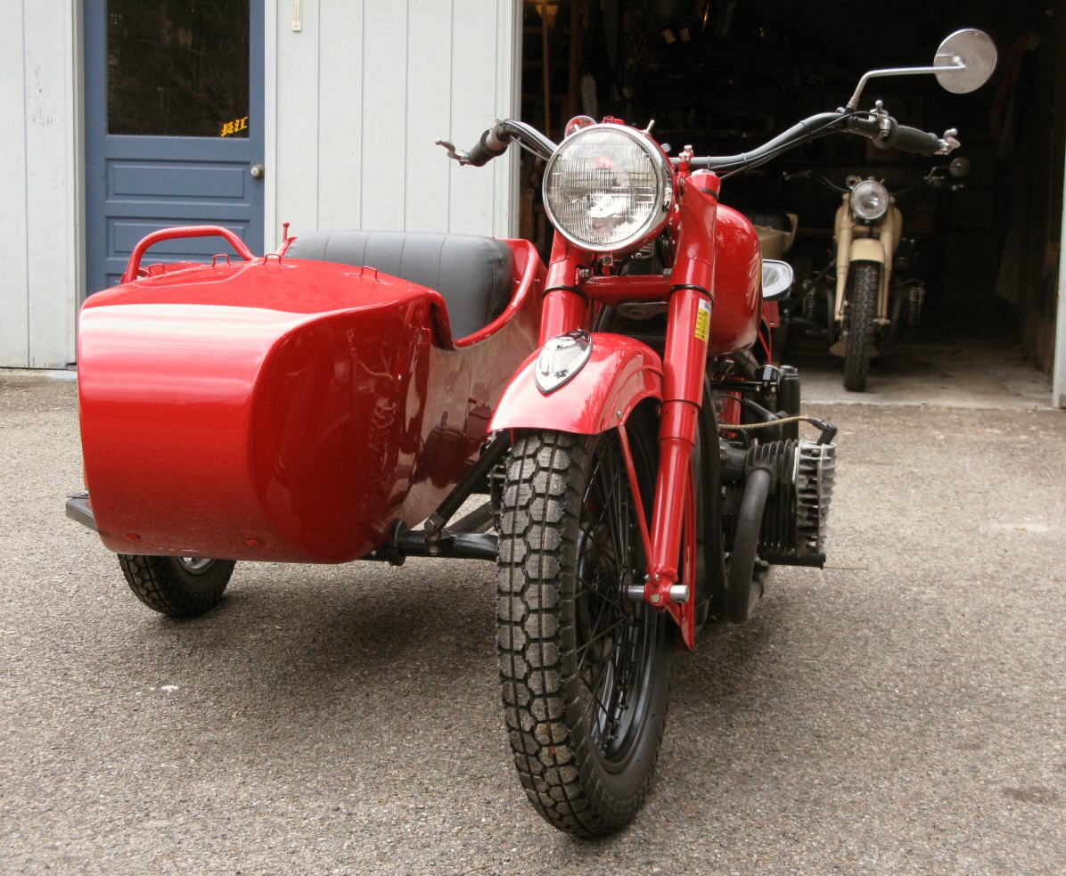 | Post-rebuild shakedown No pictures today, just words. There were indeed some teething problems, as expected. The new battery set me back $95! (I consider that a major teething problem.) It's a big honkin' car battery, the same model as before. With it mounted and the trunk wiring all connected, it was time to switch on the lights. Boing! My new Chinese sealed beam blew instantly, and neither of the sidecar lights worked. Crap. So, I got a Wagner headlamp from the local NAPA. As for the sidecar lights, I was convinced it was bad wiring, and wouldn't you know it? The battery in my Fluke meter was dead. I ran to the store for a new battery and resumed puttering. Well, there was indeed juice in all the right places. Turns out, both bulbs were bad! What a relief. Luckily, I have spares. I sure didn't want to do any rewiring. So, with all the lights finally working as they should, I started the bike. I figured it was gonna take half a dozen kicks, but I was off by maybe 100 or so. Both jugs were badly flooded due to the stupid plastic floats that I had forgot to switch over to brass. After making the switch, the bike finally fired up and boy howdy, did the paint on the jugs ever stink! It was that rust killer stuff I used under the stove paint. It's nasty! The bike seemed to run just fine, once it was unflooded, that is. Off to the insurance guy, then the DMV, and then for the dreaded shakedown run. "Shake" is a very good word to describe it because the front rim turned out to be bent from the wreck. No big deal, I'll just ride home and stick the tire on my last, decent stock CJ rim, and swap that wheel with the one on sidecar. Well... crap. The valve stem in the tire wouldn't let the air out of the tube, no matter how much I fiddled around. No big deal, I'll just buy a new tube. A few telephone calls confirmed what I already knew, the nearest source is 20 miles away. So, off to the H-D dealer in Gang Mills for an MM90 tube. The new tube is a Dunlop and it's by far the best one on the bike. It cost more than some of the tires did. Anyway, I got that mounted, and then noticed a growing gas puddle under the bike. Yes, there was gas leaking. It was leaking from the petcock, balance tube and both fuel lines. In other words, just about every place it could leak from. Crap. Today's first lesson: