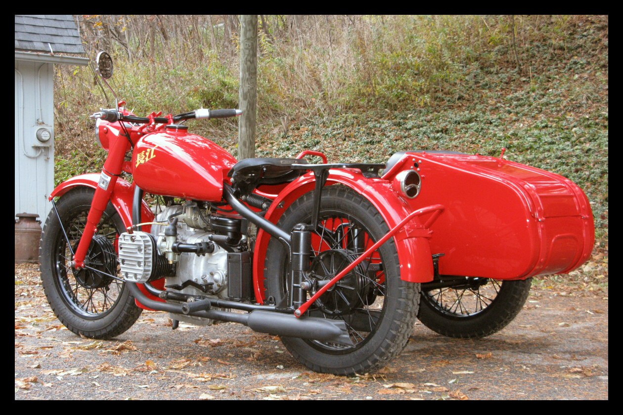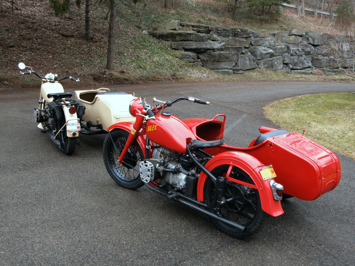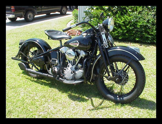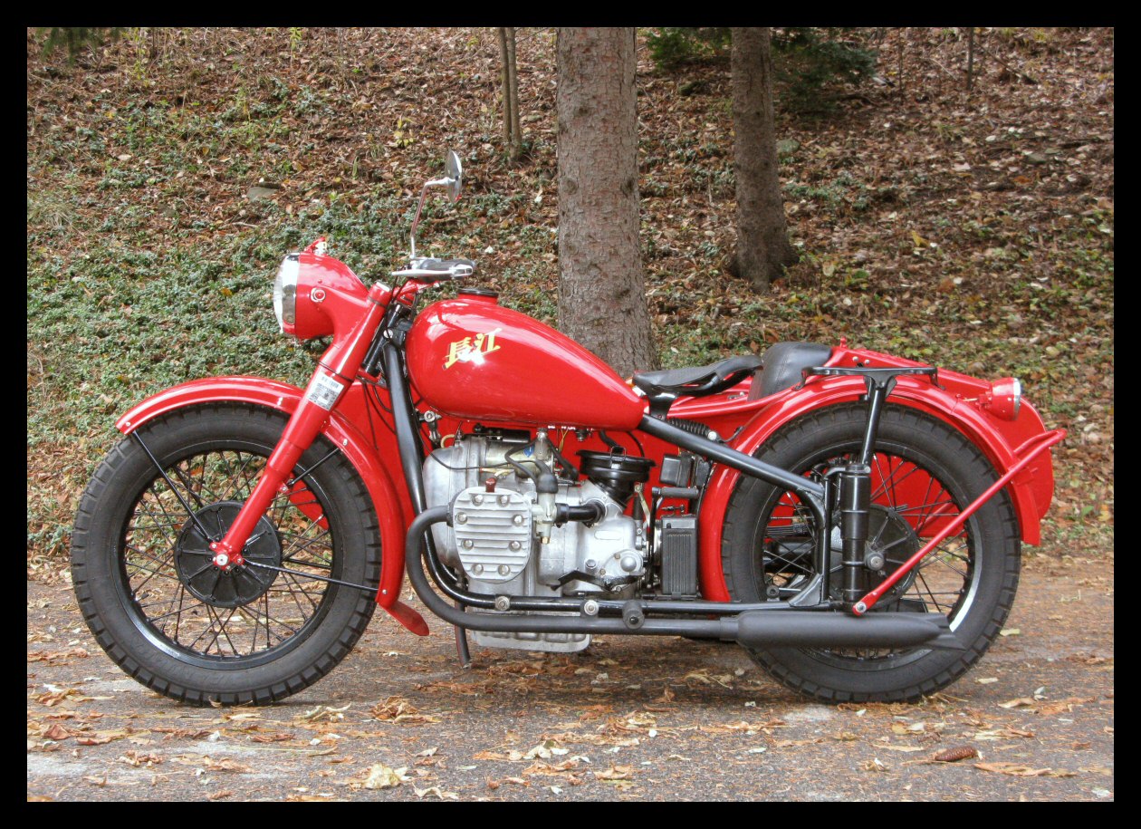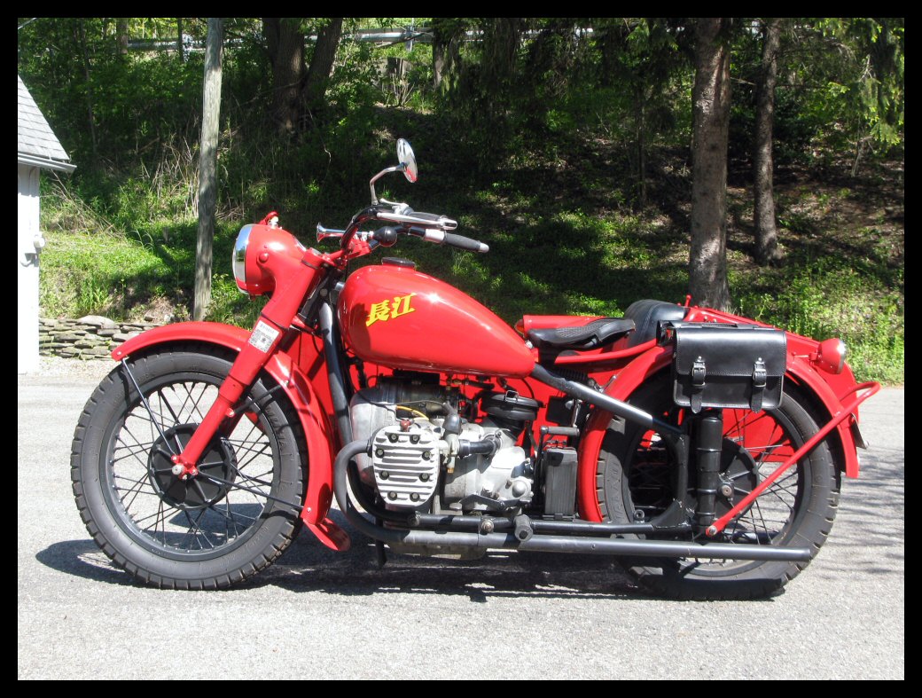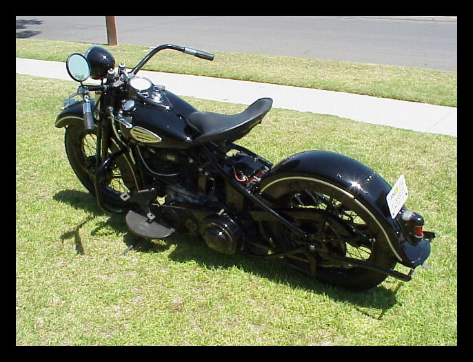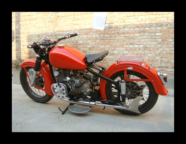 These Harleys were the inspiration. The black one is a 1940 knuckle and the other is a civilianized XA. I wish there was a way to put big fat 16" tires on a Chang. | ||