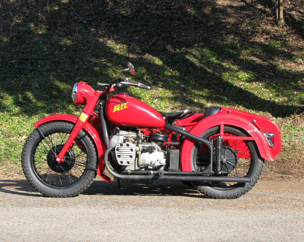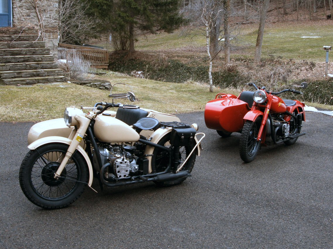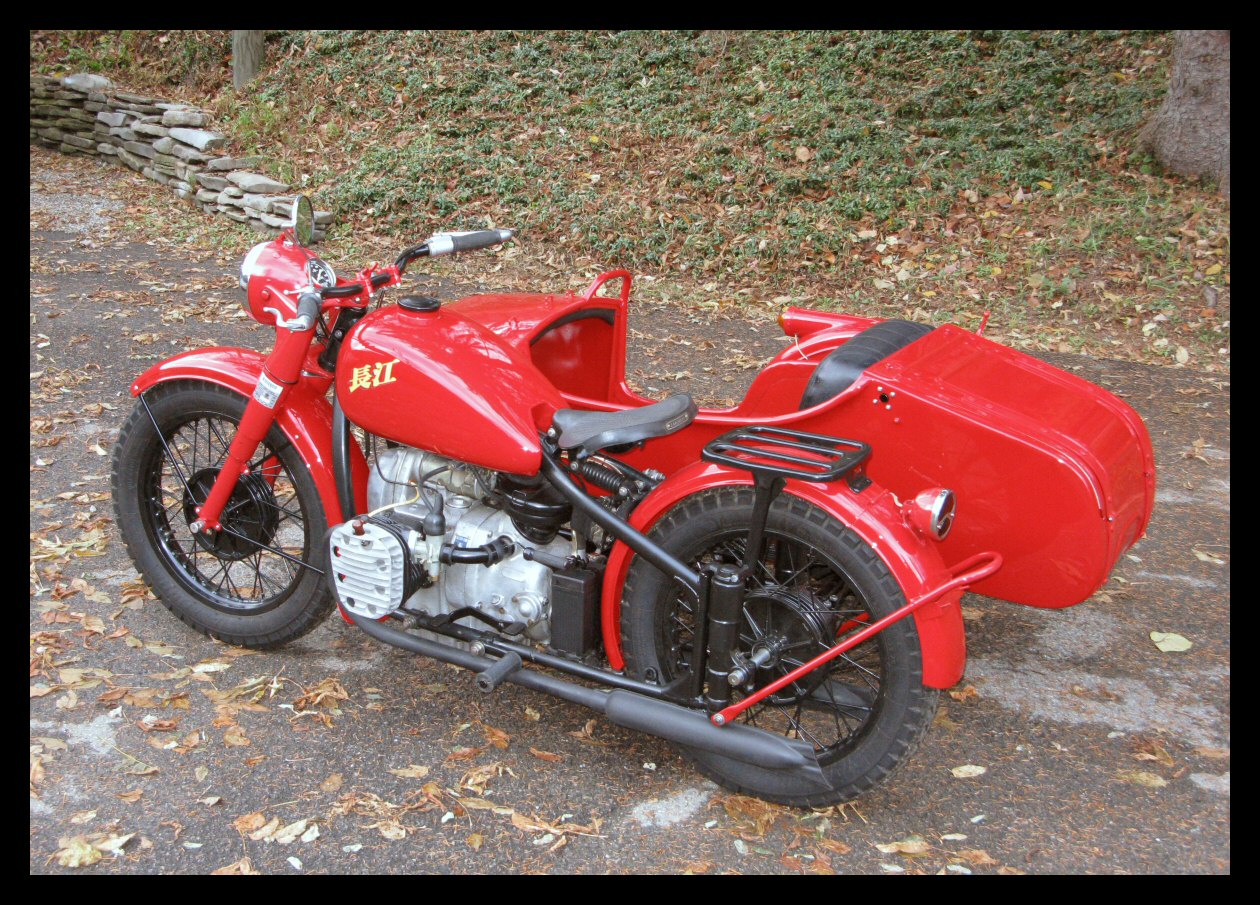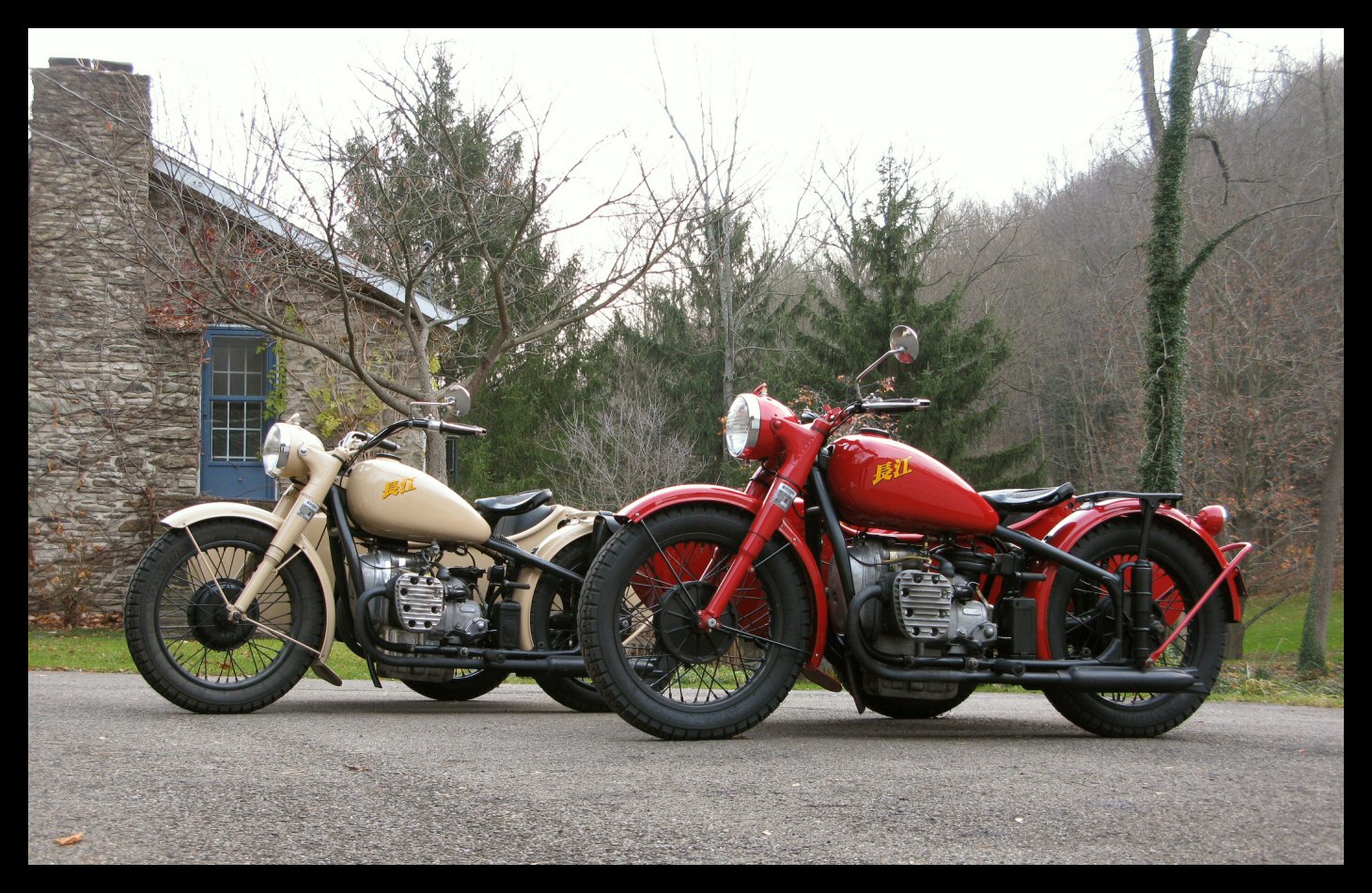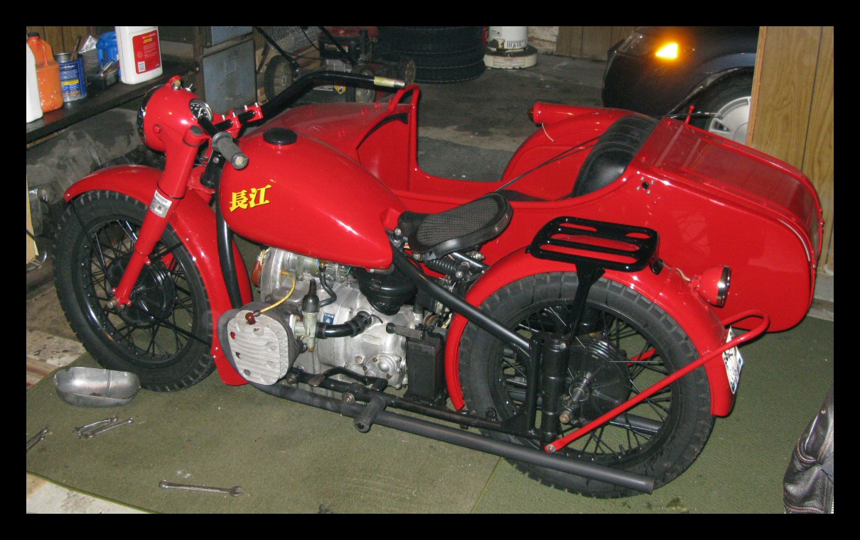 These Harleys were the inspiration. The black one is a 1940 knuckle and the other is a civilianized XA. I wish there was a way to put big fat 16" tires on a Chang. | ||