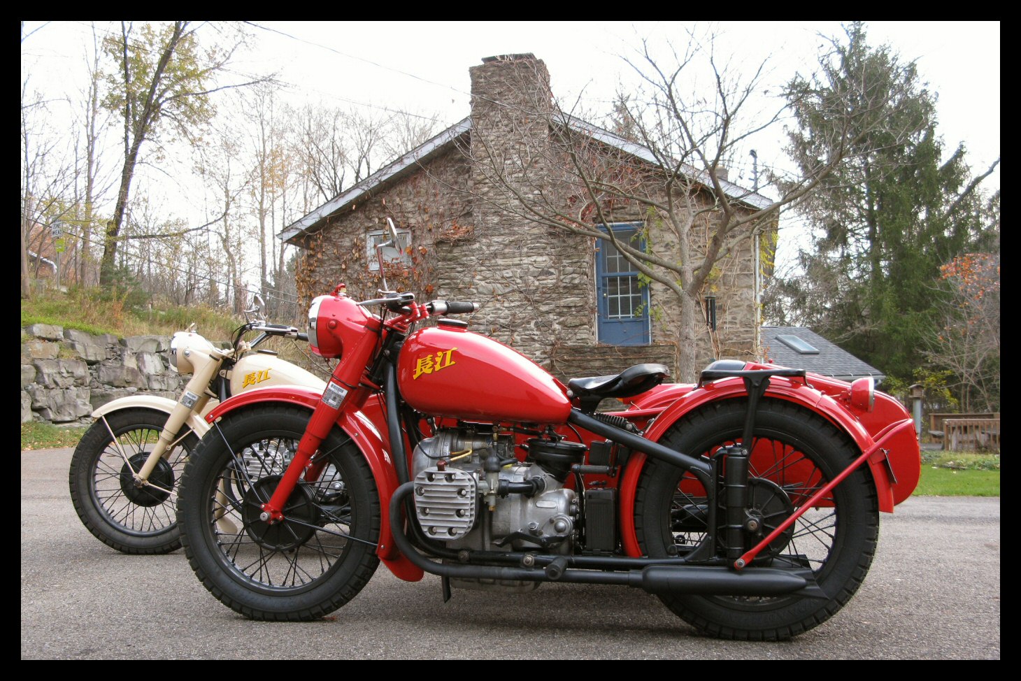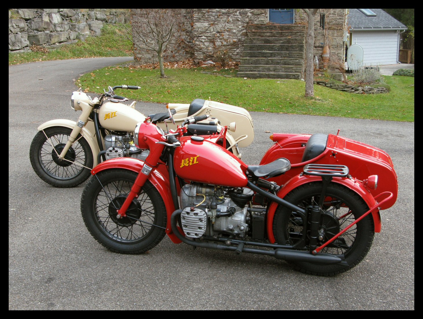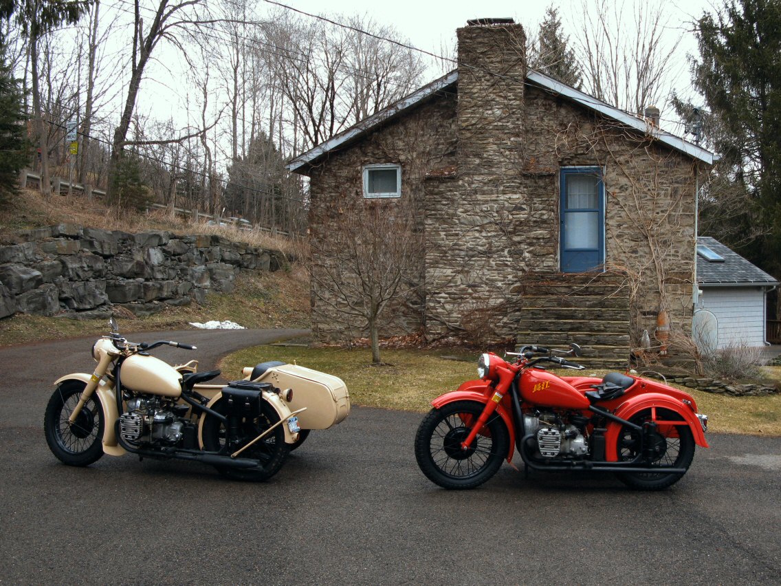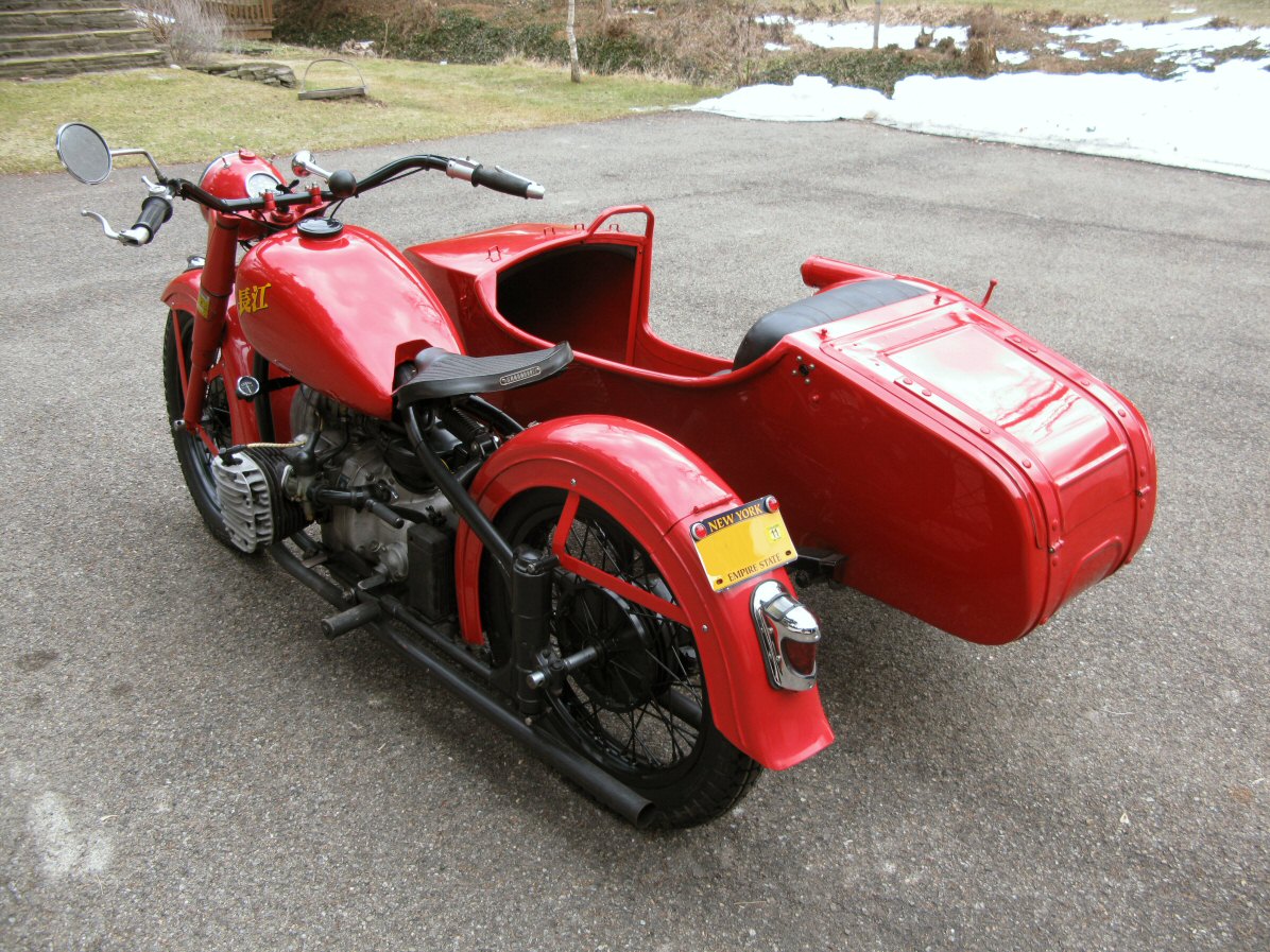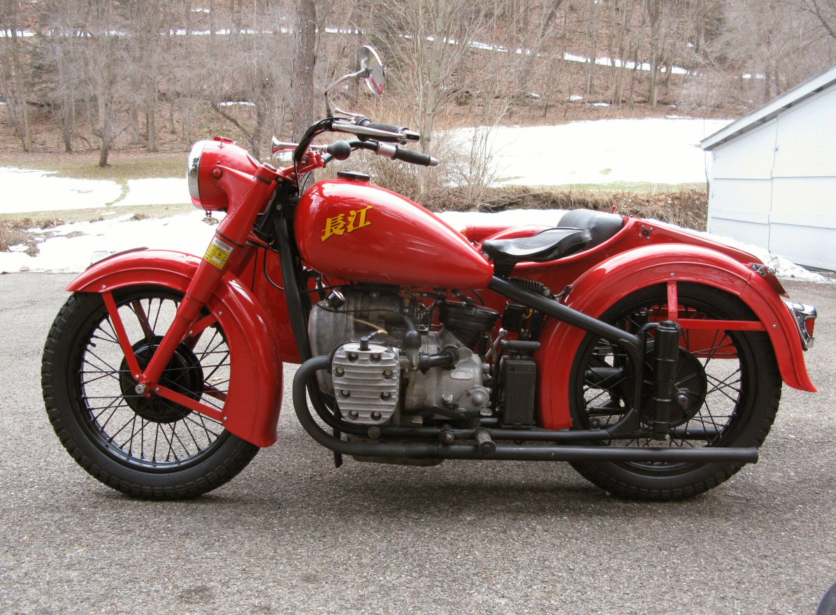 These Harleys were the inspiration. The black one is a 1940 knuckle and the other is a civilianized XA. I wish there was a way to put big fat 16" tires on a Chang. | ||
