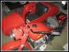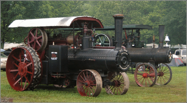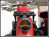 it was, it fixed itself. On the way home, the condenser bit the dust. (I'll be stocking up on VW condensers tomorrow.) This took place in an intersection just as the light turned green. I jumped off and pushed the bike out of the road and commenced to changing the condenser. A Harley rider stopped to offer assistance, but I was okay. While changing the condenser, I couldn't help but think about how inconveniently they're located. On a 6V Chang, you have to pull the distributor off completely to access the condenser. Since condensers fail from time to time, I decided to relocate it in order to facilitate faster swaps instead of the usual 20 minutes. It was very easy, and utilizes crimp connectors for quick disconnecting. The condenser is in a bracket, screwed to the side of the distributor. (You can read more about that in the Toolbox.) I can hardly wait for the next roadside condenser failure! And lastly, the bike repeated one of its earlier tantrums a couple miles from town. I had to manipulate the spark advance lever to find a spot where the bike didn't cough, sputter and backfire. That's how she behaved the rest of the way home, and the problem turned out to be exactly what I expecteda freewheeling rotor. Yep, it was that old chestnut. You see, one thing I didn't have in the toolbox was Loctite, so the rotor screw went back in dry after I replaced the condenser earlier in the day. I sure didn't expect it to back out as quickly as it did, though. Oh well, everything's sorted. And here's a picture of what I went to see in Canandaiguasome awesome old machinery. |