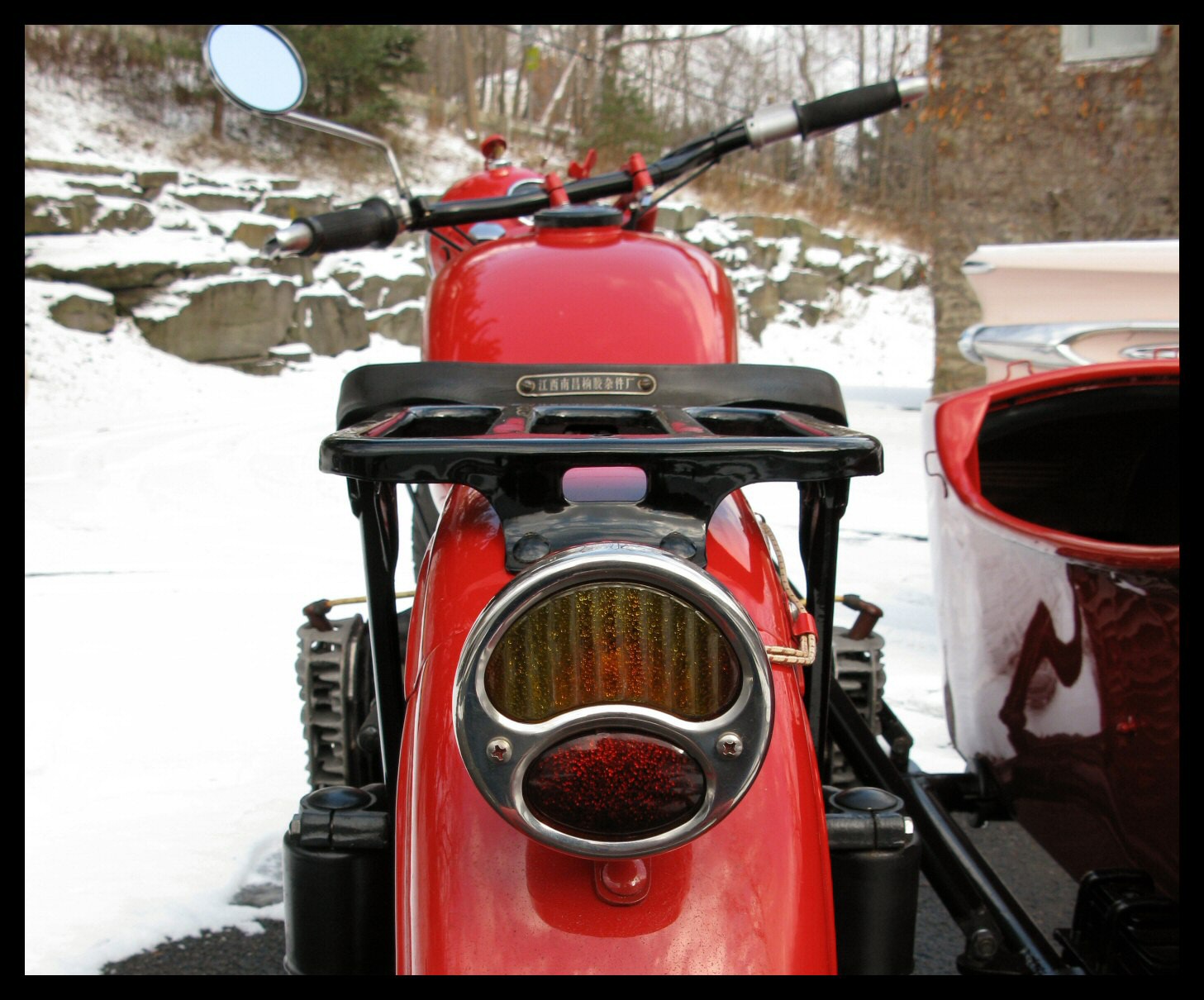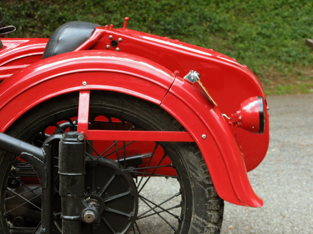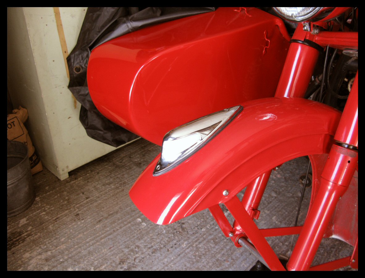 Another detail made itself apparent once the bike was outside in the sunshine for the first time. The paint on the rear fender is slightly pink compared to the rest of the bike. I suppose there's always the possibility of putting the CJ fender back on. Time will tell. | |||