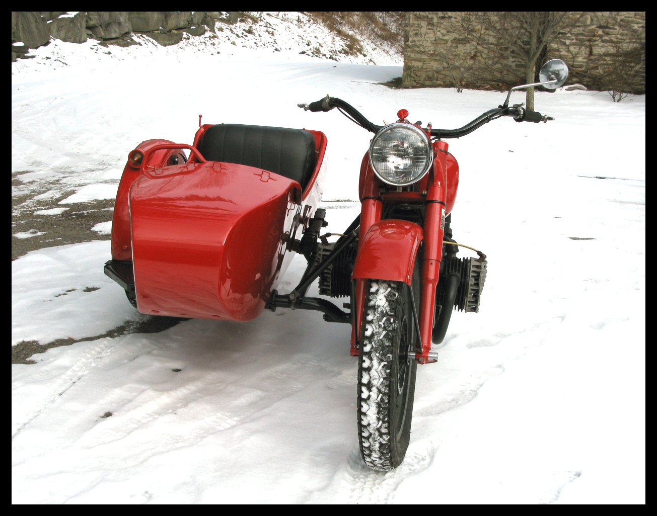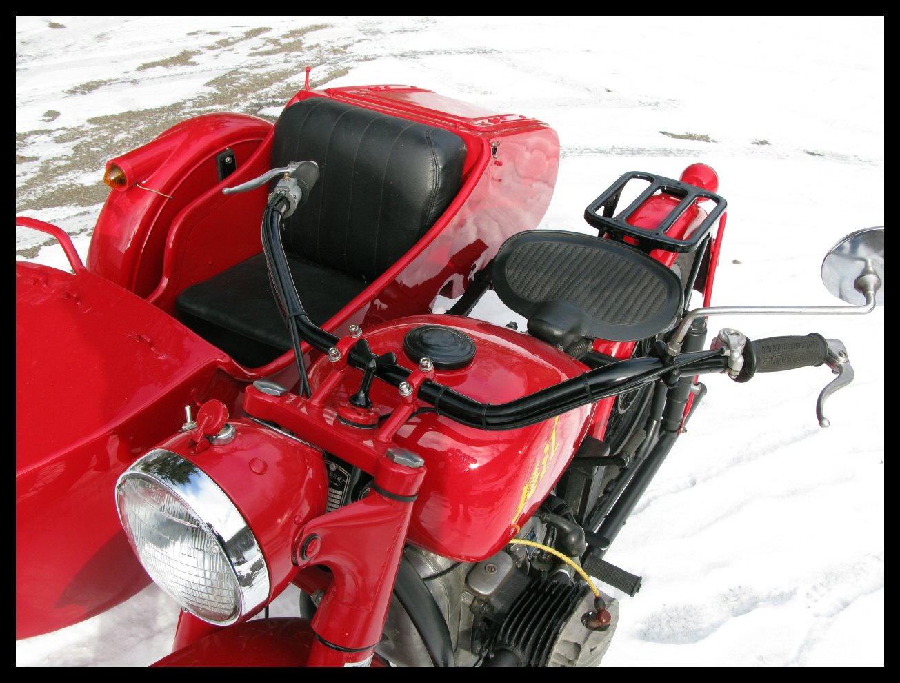 It was snowing and raining today, so no riding. I rode all day yesterday but didn't dress quite warm enough. Being cold takes some of the fun out of it. Anyway, both bikes were in the driveway while I was sweeping out the shop... might as well take photos. | |||