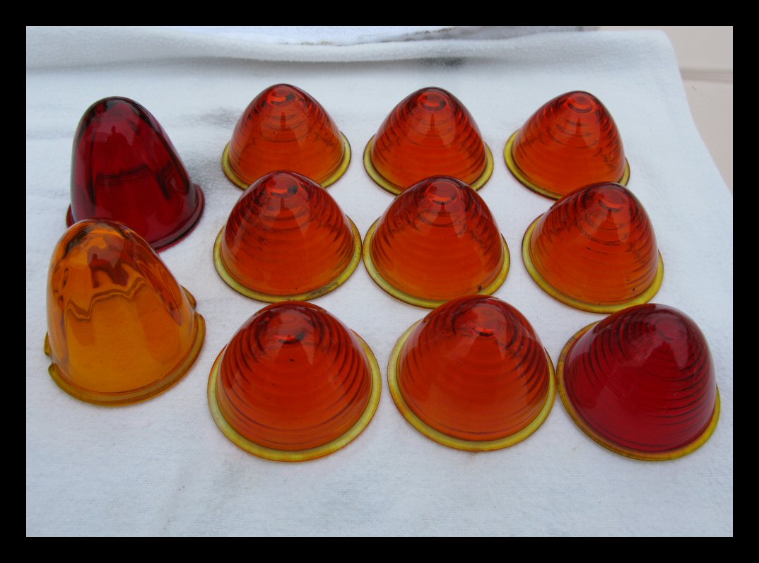 | Below: Glass is class. The plastic "beehive" lenses on both bikes have been replaced with antique glass lenses. They're shinier, and the red lens has deeper color. I have extras if anyone's interested. | |||||
