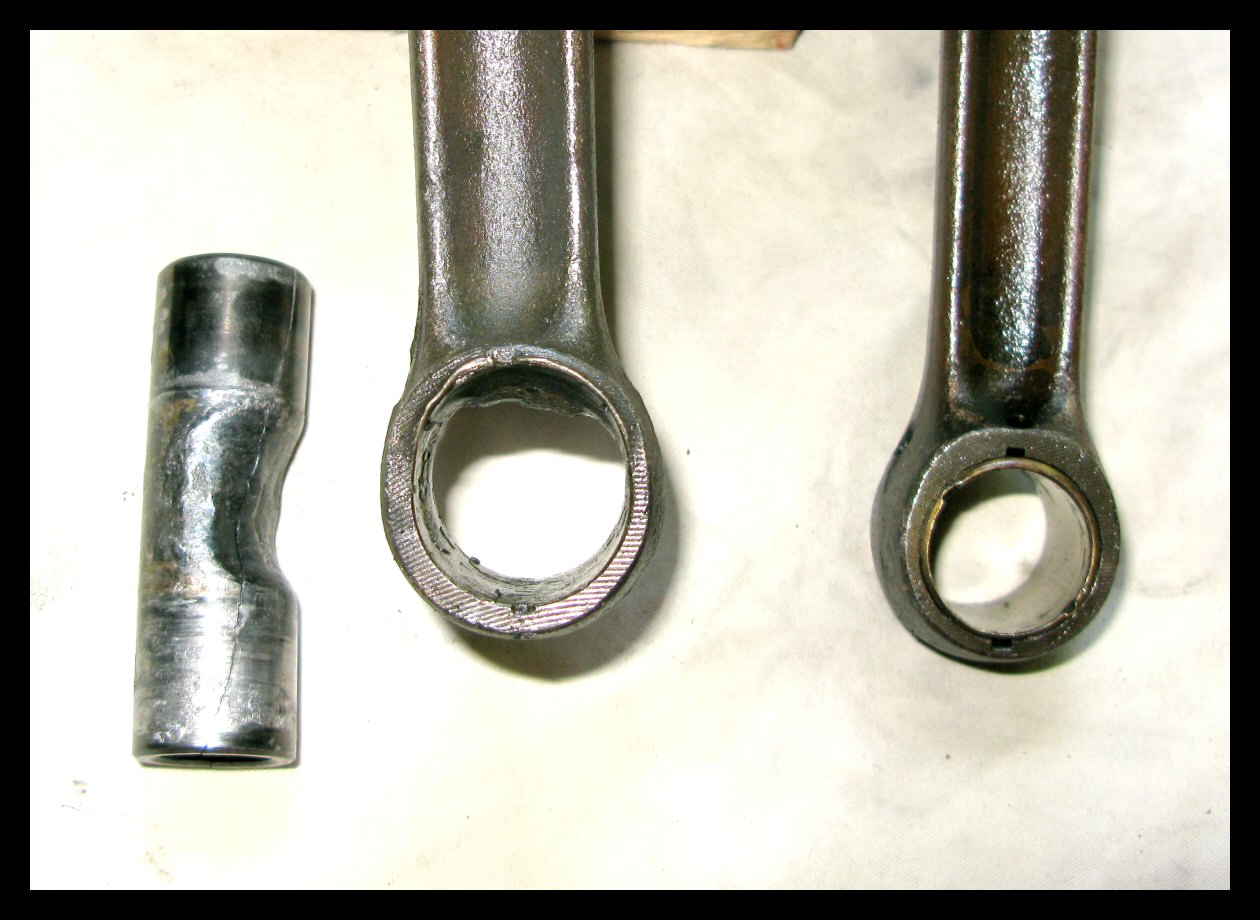 After seven years of fairly hard use, something like this was bound to happen. Oddly enough, this didn't happen all at once, yet there were no symptoms leading up to the failure. The bike motor still ran when I tore it apart, but you could certainly tell there was something seriously wrong. The pistons and rings didn't look too good, either. | ||||