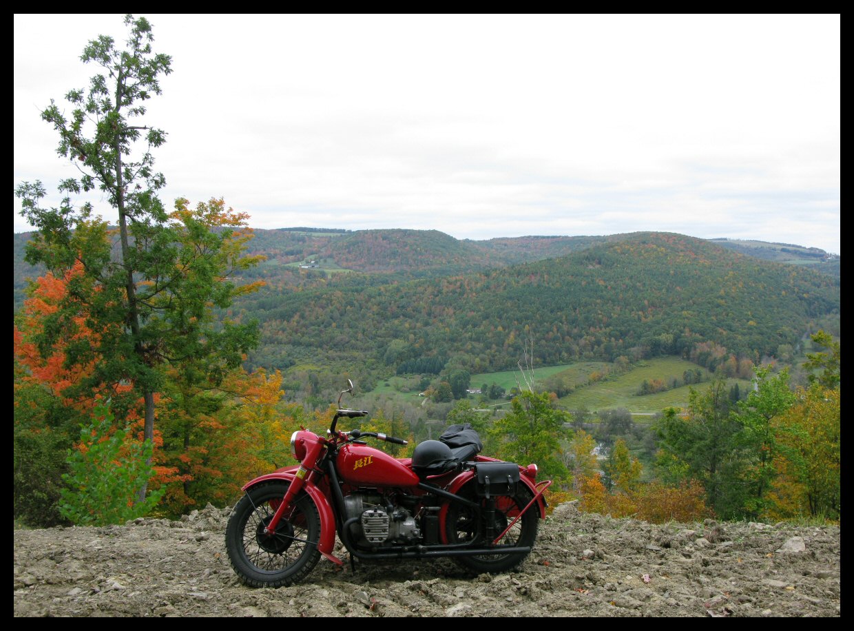 | The big shakedown turned out to be a mini-shakedown thanks to rain, but it was enough to convince me that the bike is indeed ready for the road. As a matter of fact, I plan to ride it to the New York Steam Engine Association's 50th. annual Pageant of Steam in Canandaigua, barring more rain, of course. And, just to make for a more interesting day, the route will consist almost entirely of back roads. There are several reasons for that, one of them being the need to run slow while the rebuild is broken in. The back roads around here are scenic and free of traffic. Plus, all the little podunk places along the way have mom and pop stores where you can get a grape Nehi and chat with whoever's admiring the bike when you leave. It should be a really nice day. | |||||