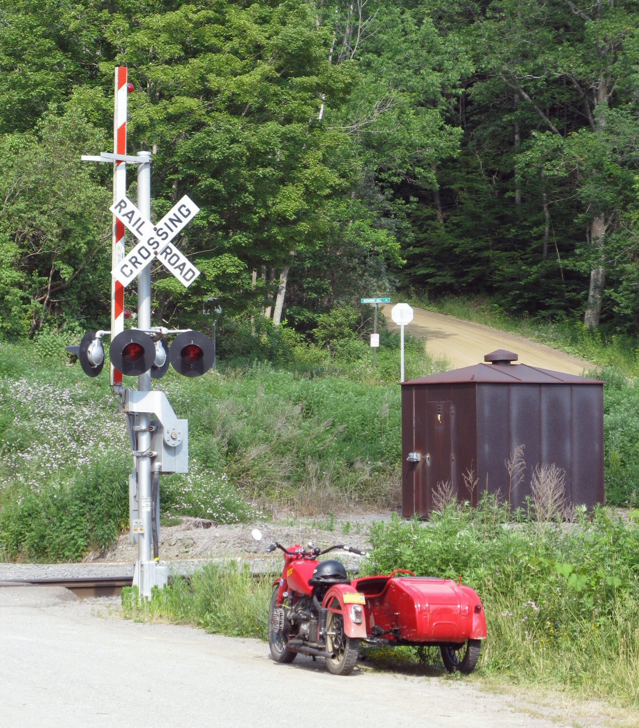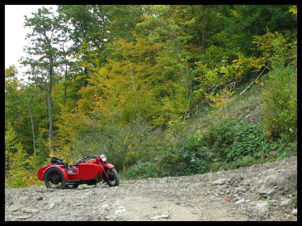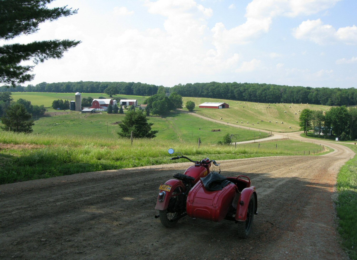 Today was brutally hot, but that didn't stop my wife and me from spending a few hours on some of best sidecar riding roads anywhere. Just ahead, on the right, is the Oregon Grange building, dating from the 1800s. There has been farming in Steuben County for over 200 years. We live in a large, sparsely populated county. | ||||