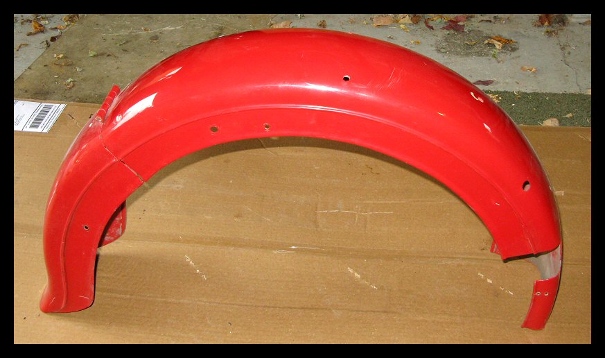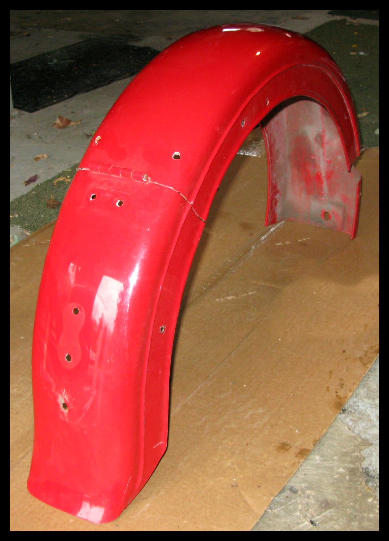 Here's the front fender. These were often two-toned on Harleys, and that's a possibility here. Luckily, I have a couple months to think it over. I'm not 100% sure I love this fender, but we'll see. | |||