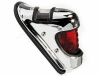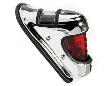 A Harley fender practically screams for a Harley taillight. This particular type is a prewar style. The license plate is illuminated through the top of the housing. Personally, I think it looks better than the classic Harley-Davidson tombstone taillight. | |||