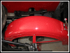 | Below: There's always something... I got the wheels back on the bike today and did a little paint touch up. The bike's ready to ride except for one little detailthe front fender rubs against the tire. That means I'll be fabricating some longer brackets in order to get more clearance. That little task will commence today with the purchase of some steel. | |||||