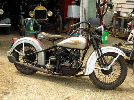 This '34 HD illustrates the look I was hoping to capture. We sort of succeeded on one end of the bike. Perhaps a genuine HD front fender is in order since they were designed for fat tires. | |||