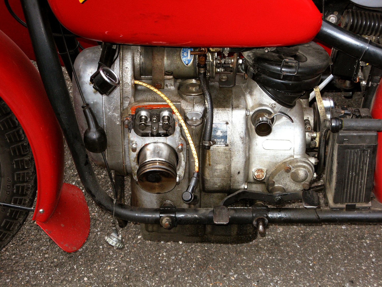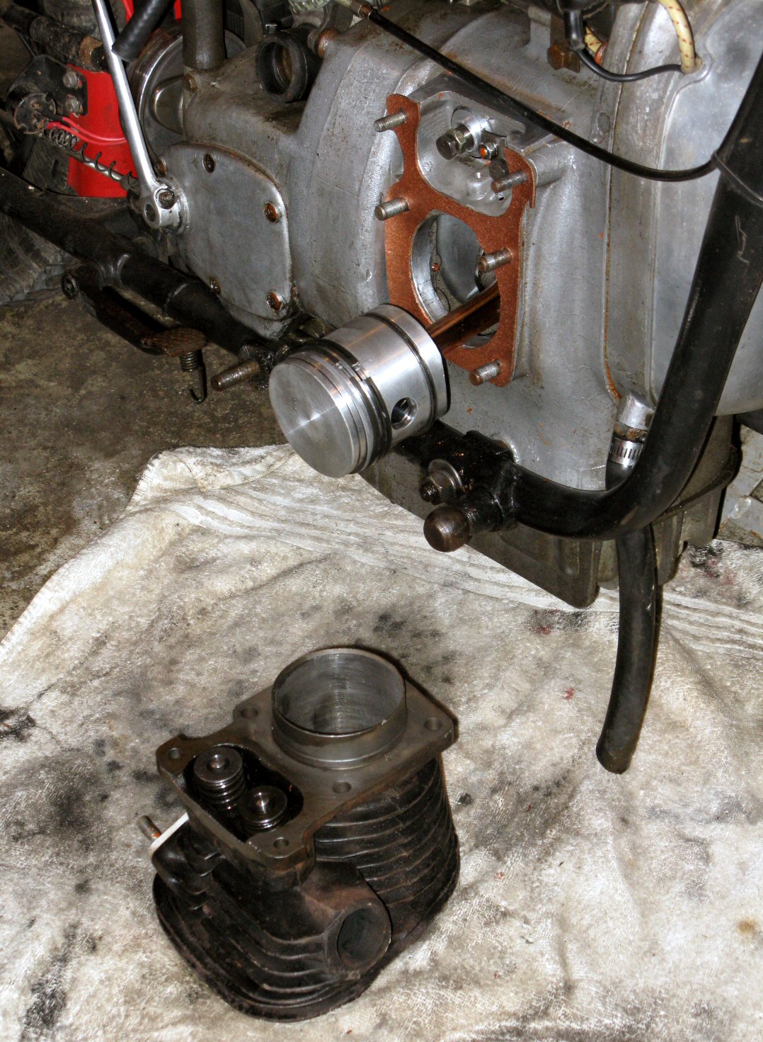 The jug is ready. See the gasket on the side of the motor? It's made from cork gasket stock. | ||||