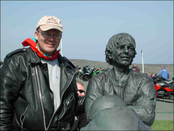 More images from the Isle of Man. This batch was taken at a gathering of classic bikes. Here's Jim with Joey Dunlap. | ||||
