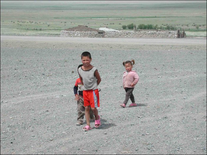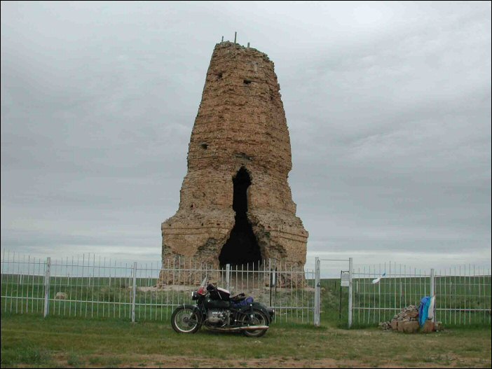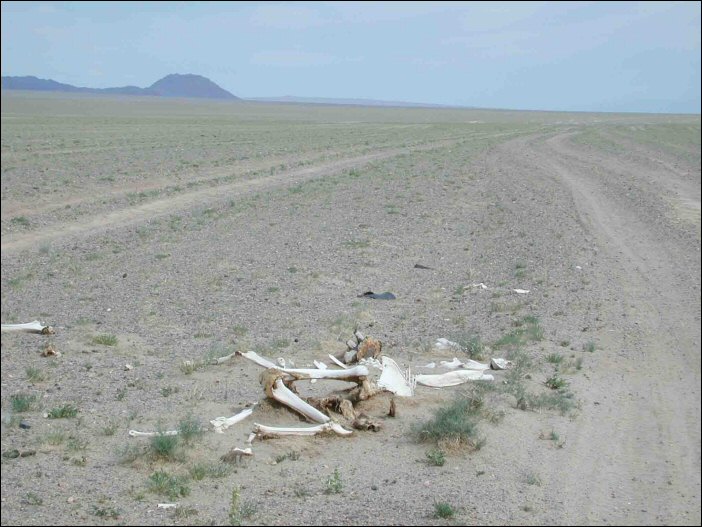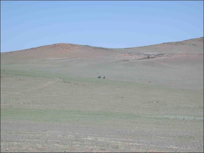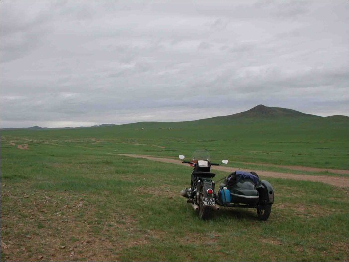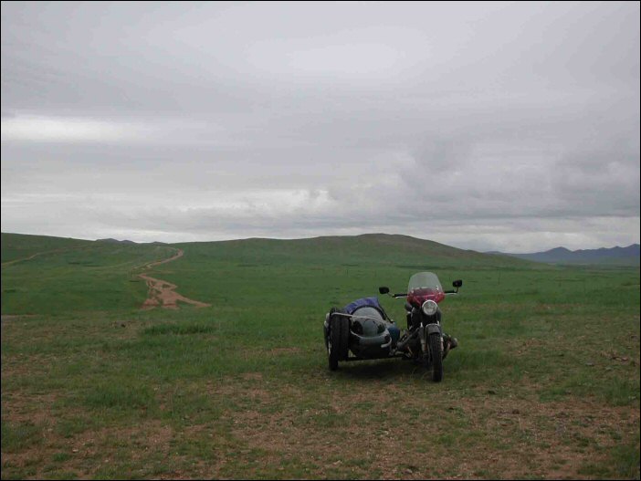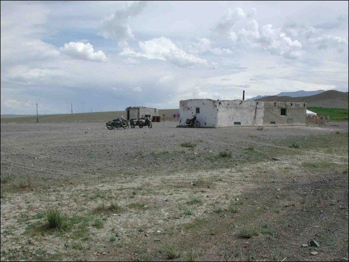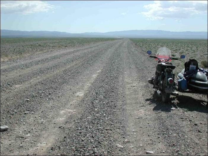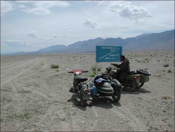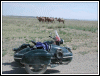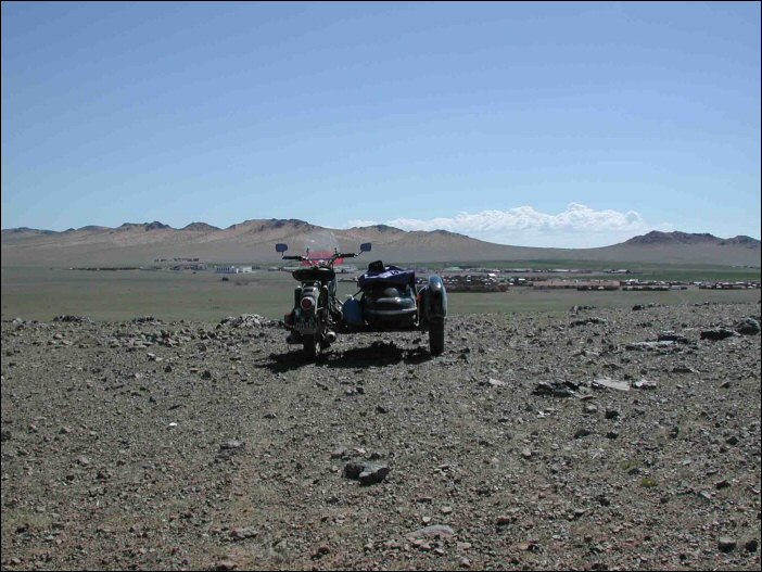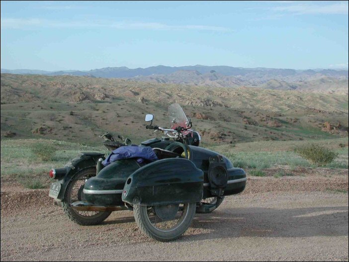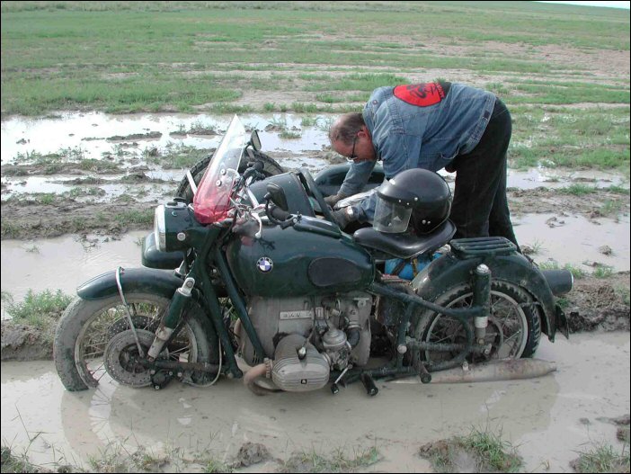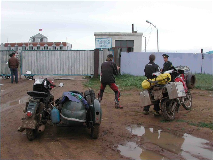generators. You'll also see pictures from the Gobi, the mud bogs, the eastern border with China that would not let me through, and after I scraped all the mud off in Ulaan-Baatar, which of course accumulated once again after I left U-B. But it was clean for a day anyway! I spent 2-1/2 days at the eastern border before I finally "got persuaded" to leave and backtrack 700 kms to the southern border with China." |