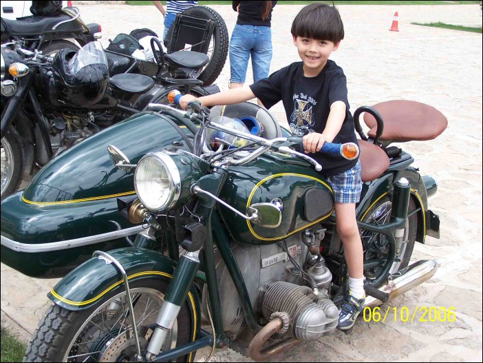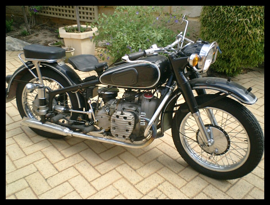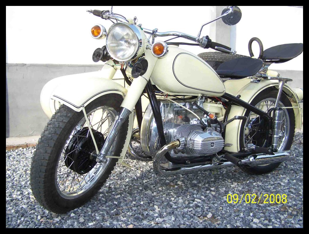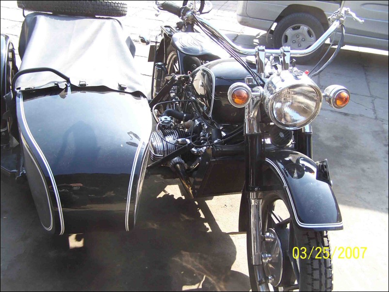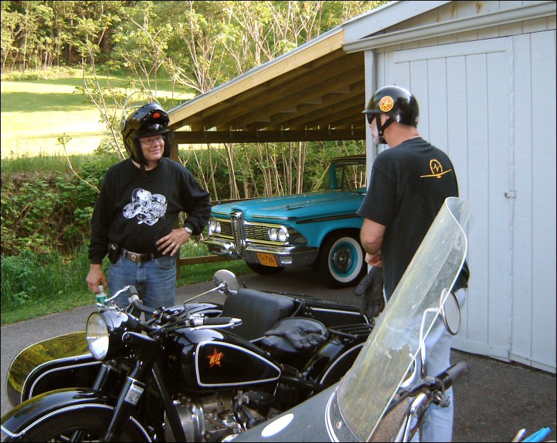 Lydon. Mike rides a Beemer-powered Dnepr, aka a