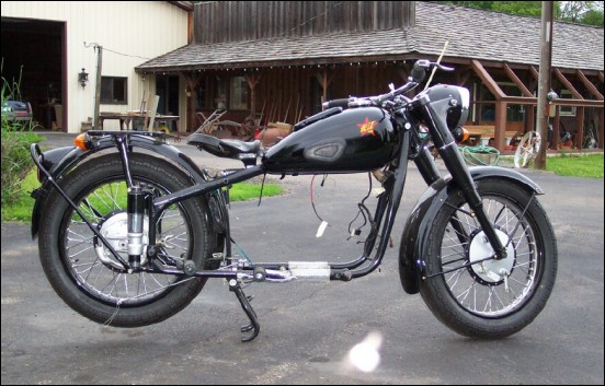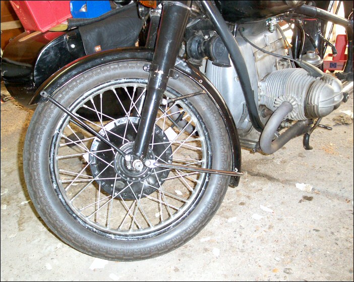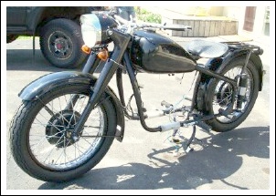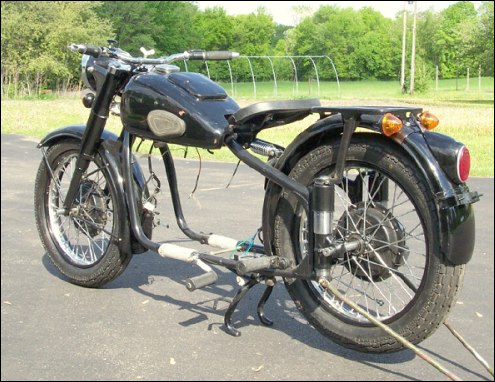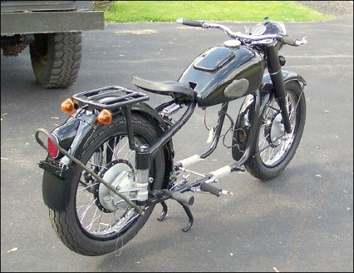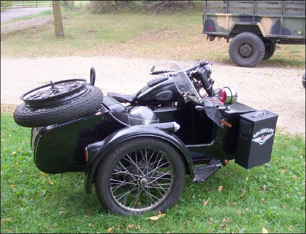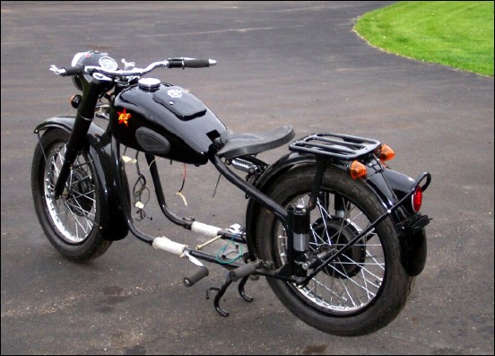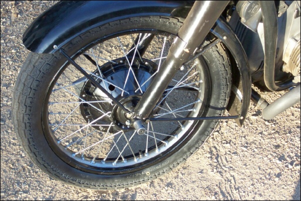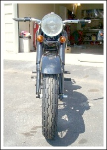 A shot of the bike before the ammo boxes were installed. You can see the Triumph front hub very clearly in this picture. | ||||