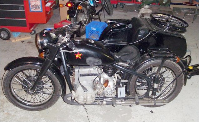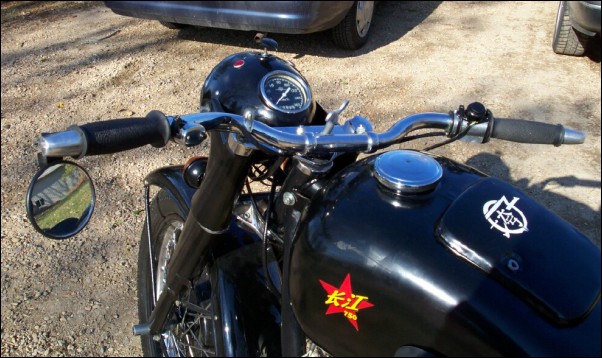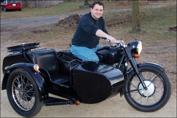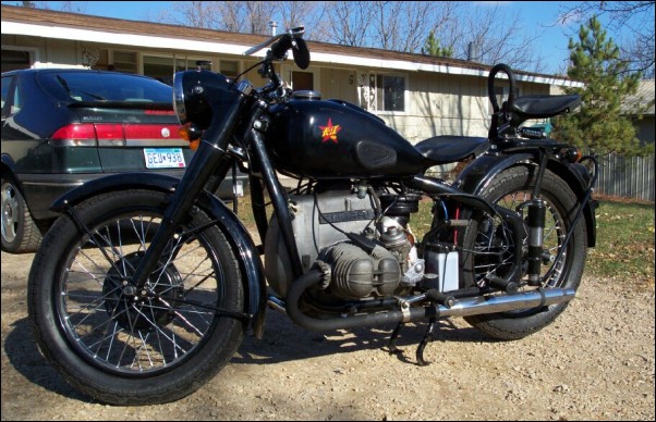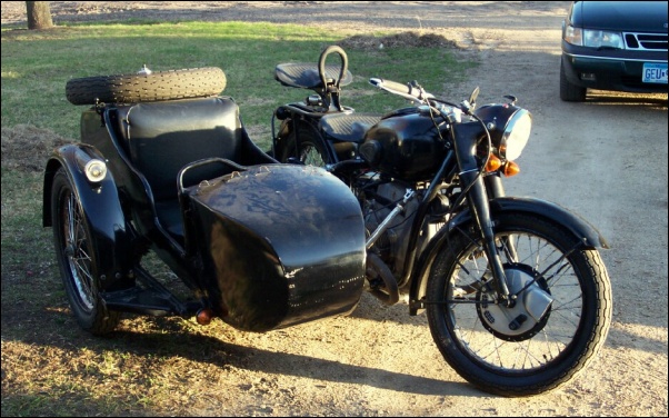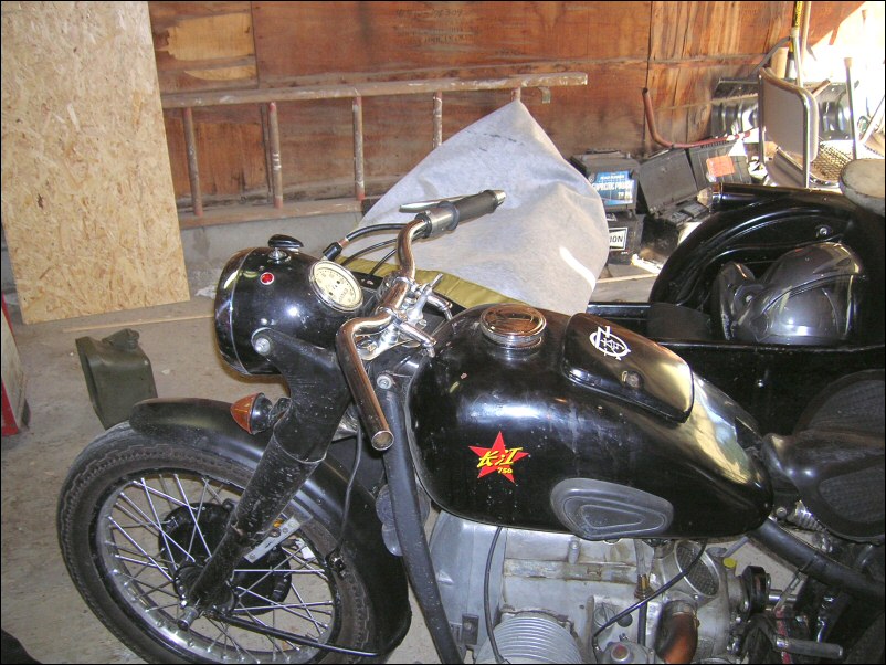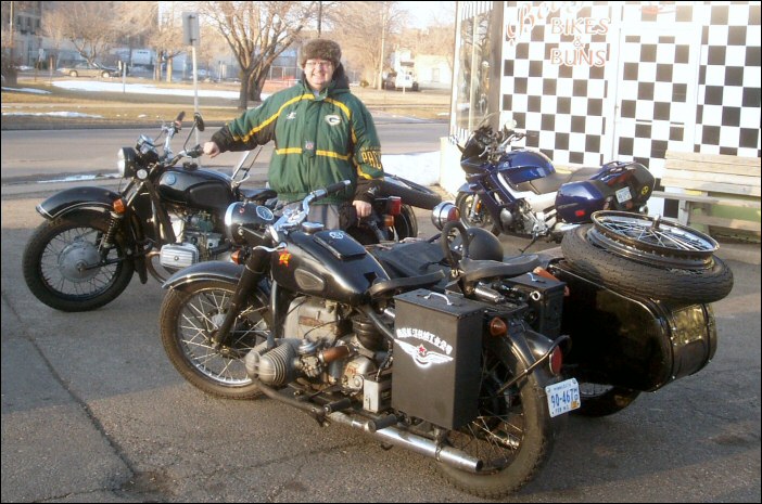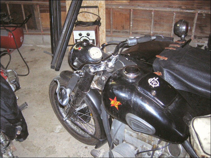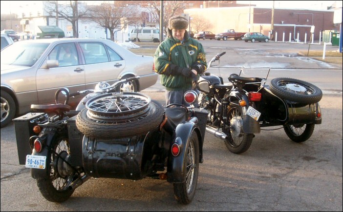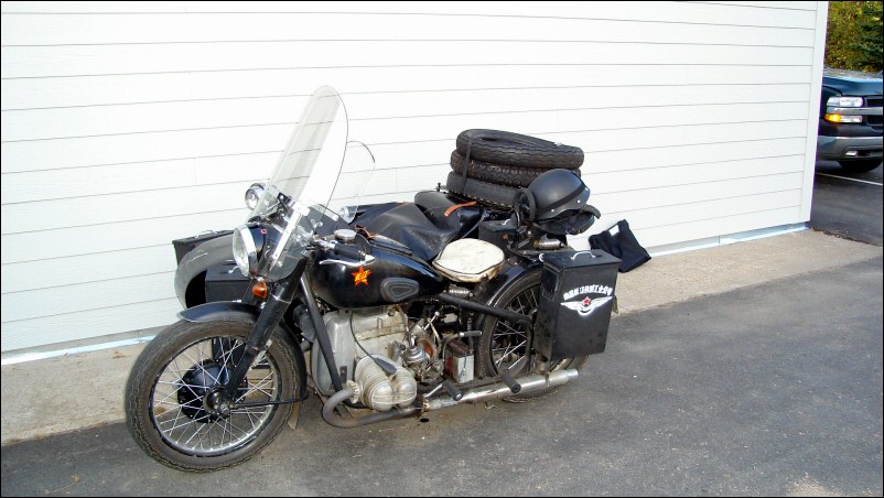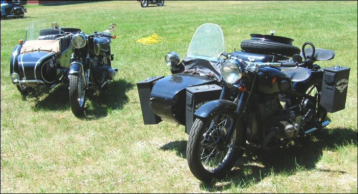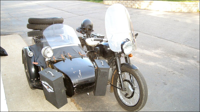 "This last weekend I made a buddy get his Dnepr out of the garage for the first time this year and go for a ride. That's Steve B. from the Dneprheads group in these pictures." [Nice looking bikesboth of them!]" | ||