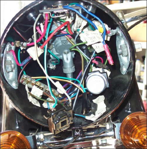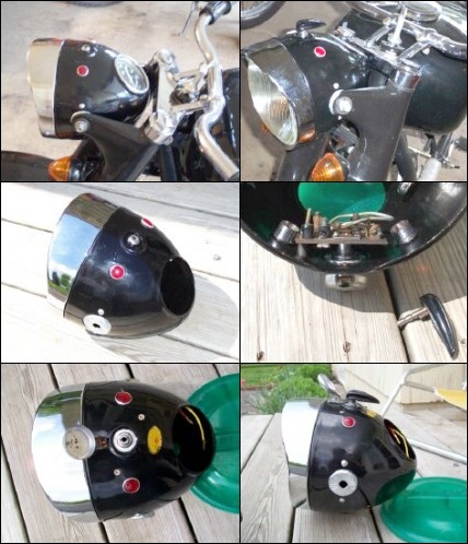 The enlarged image shows six views of his headlight which uses a BMW /5 ignition switch and circuit board. This is going to be a nice bike! | ||||